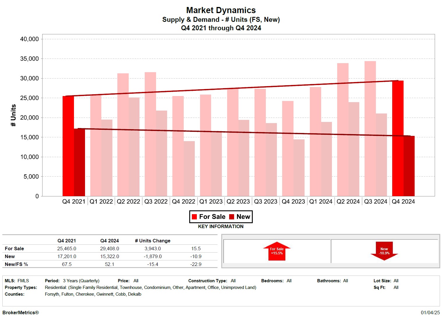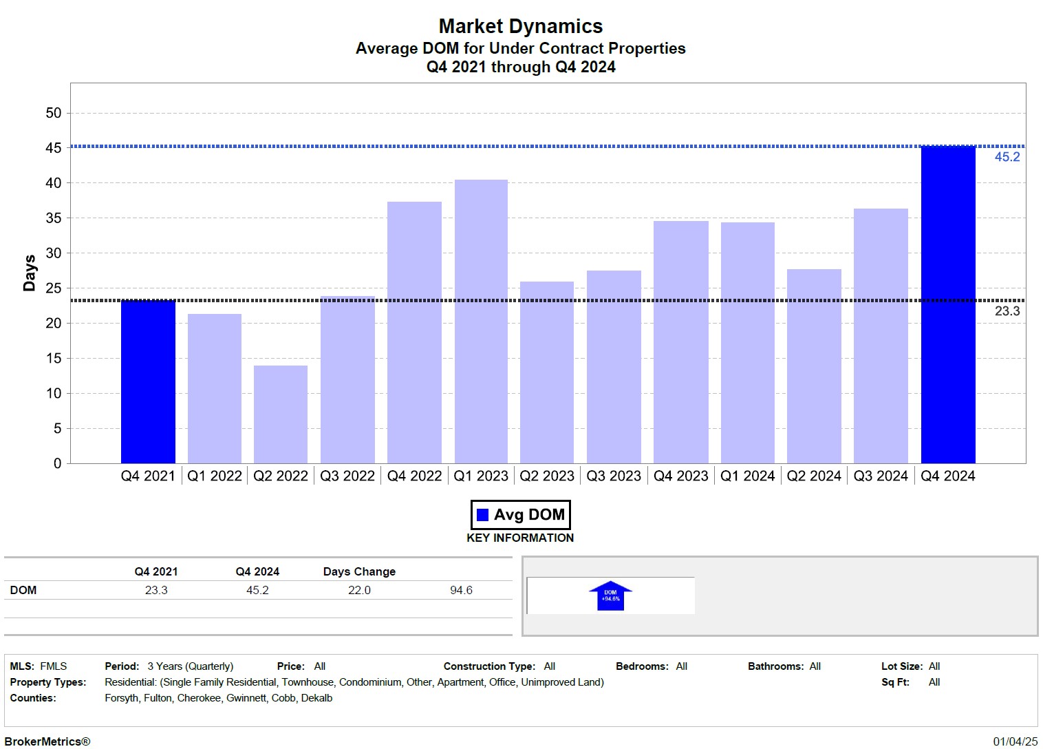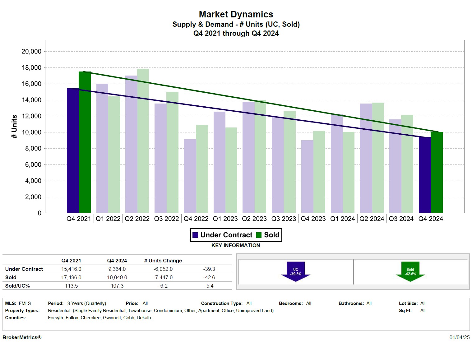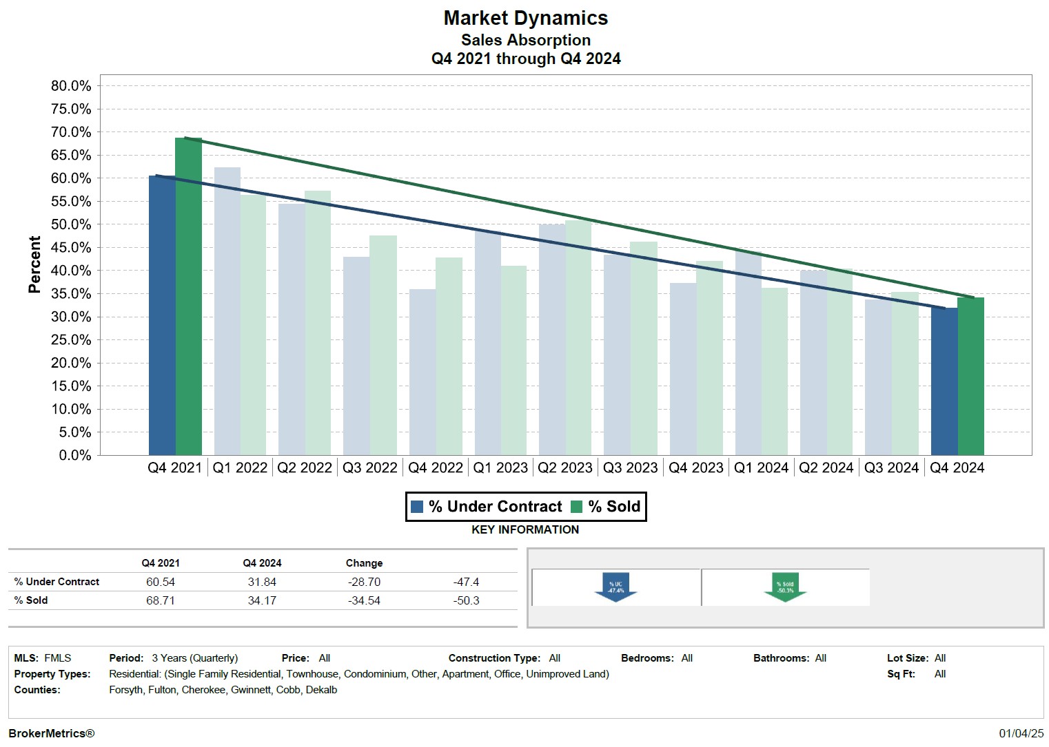 We're bullish on the spring '25 Atlanta real estate market. Now that the "interest rate" situation appears over and the election is done, this market can get back to being boring. Boring real estate is good, boring housing markets are safe and predictable. Significant challenges remain, but with the election over what appears to be an end to the "Fed Watch" on rates, things should settle down. One unknown is how agent compensation is received now that it is in effect. Q4 was the roll out, this spring will be a chance to see how that plays in a busy market.