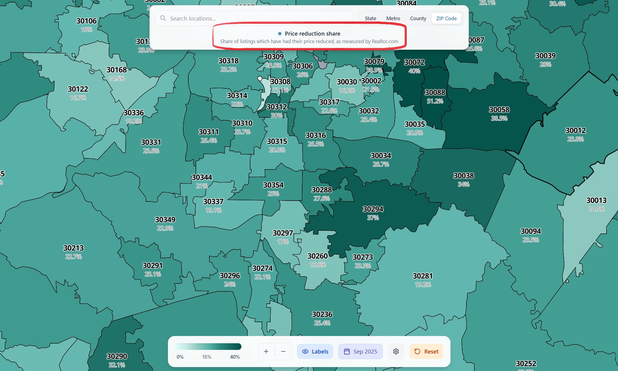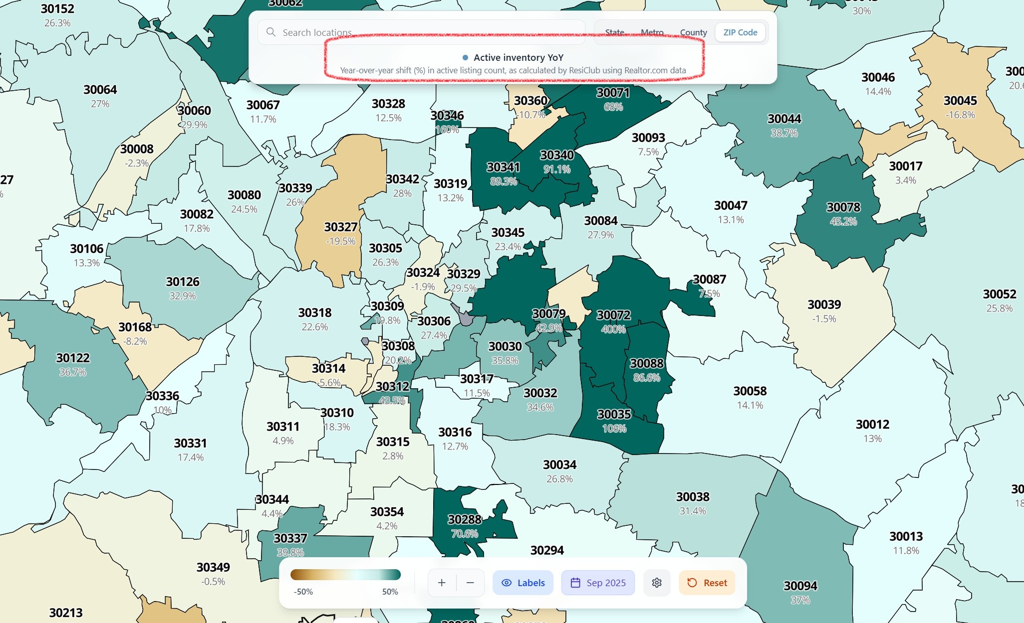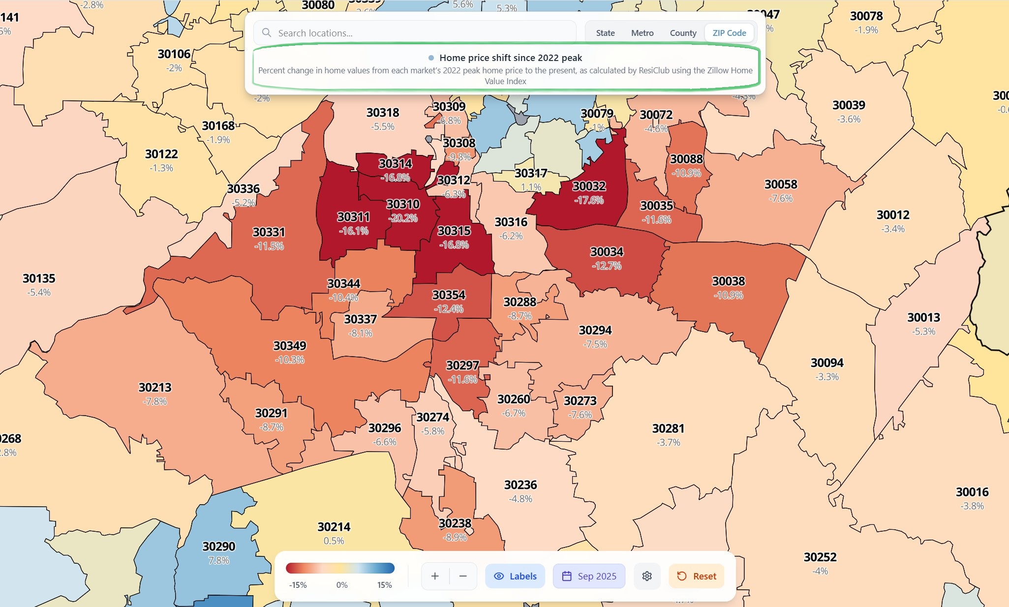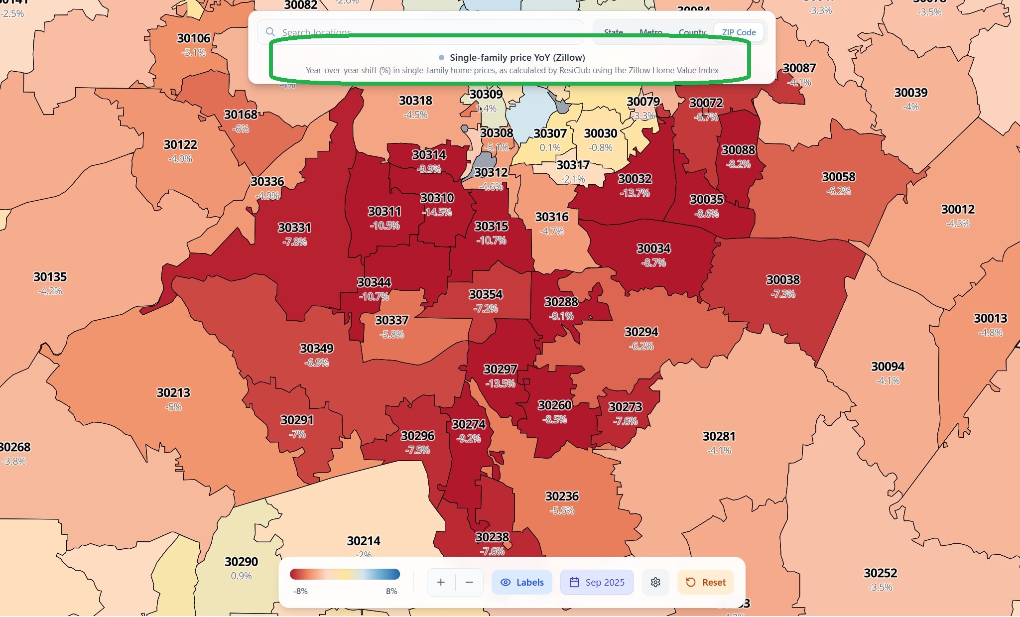 Atlanta Home Prices YOY (Sept '24 - Sept '25)