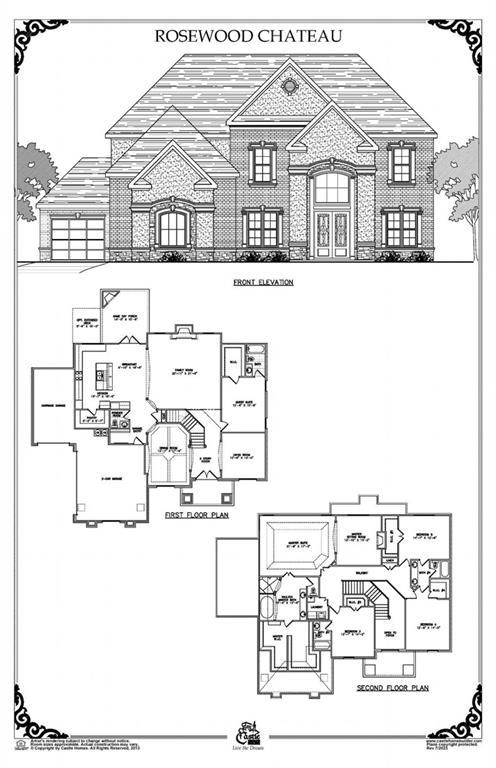 This home boasts beauty and entertainment! Detailed crown molding throughout! The lovely 5-bedroom, 4.5-bathroom home features an open concept throughout. The home's exterior features brick, three sides with a water table rear, and charming stucco accents. Upon entering through the double doors, you'll be greeted by a grand two-story foyer and a stunning staircase. The family room includes a cozy fireplace with built-in bookcases overlooking the gourmet kitchen with stainless steel appliances, an oversized walking pantry, 42" cabinetry with a work island with a breakfast bar, granite countertops, and a gorgeous tile backsplash. Your guest will enjoy an overnight stay in the oversized guest en-suite on the main level. Are you working from home? You can use your separate living room/study as your workspace and privacy. Your family and friends will enjoy fine dining in your beautiful dining room with a decorative ceiling! Multiple vehicles? No worries, this home has a spacious 3-car side entry garage! Upstairs, the massive owner's en-suite offers a trey ceiling, a sitting room with a fireplace, an oversized walk-in closet, and the equally impressive bathroom with vaulted ceiling, double vanity, separate enclosed custom tiled shower, stand-alone tub encased with tile and linen closet. Don't miss out on this rare opportunity to own a home that perfectly balances luxury and functionality. Also, please ask about our optional features: a media room, gameday porch, basement, technology package, and more! Optional elevations, features, and pricing vary per location.