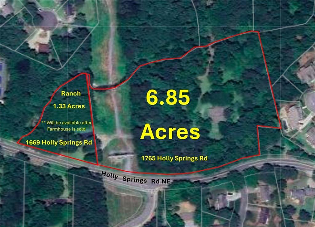 6.85 Acres in sought-after Pope High School District. Sewer on Site. Zoned R-30 with 600ft Road Frontage on Holly Springs Rd. Suitable for approximately 4 residential lots. One of the largest parcels available for residential development in East Cobb. Only 10 miles to Atlanta city limits and close to Shopping, Restaurants, Schools & Churches. Charming 1940's farmhouse with 3Bd/2Ba on site sold as-is.