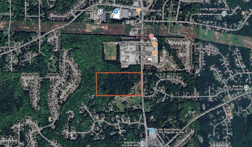 Prime development opportunity in Douglas County! This 23.99-acre lot offers incredible potential for a neighborhood or mixed-use development. Conveniently located next to Chapel Hill Middle School and within walking distance to Kroger, the property provides excellent accessibility and visibility. Just 3.5 miles from I-20, this location ensures easy connectivity for future residents or businesses. The lot features two tear-down houses and a restorable brick ranch, adding potential for creative redevelopment. Don't miss the chance to bring your vision to life in this highly desirable area!