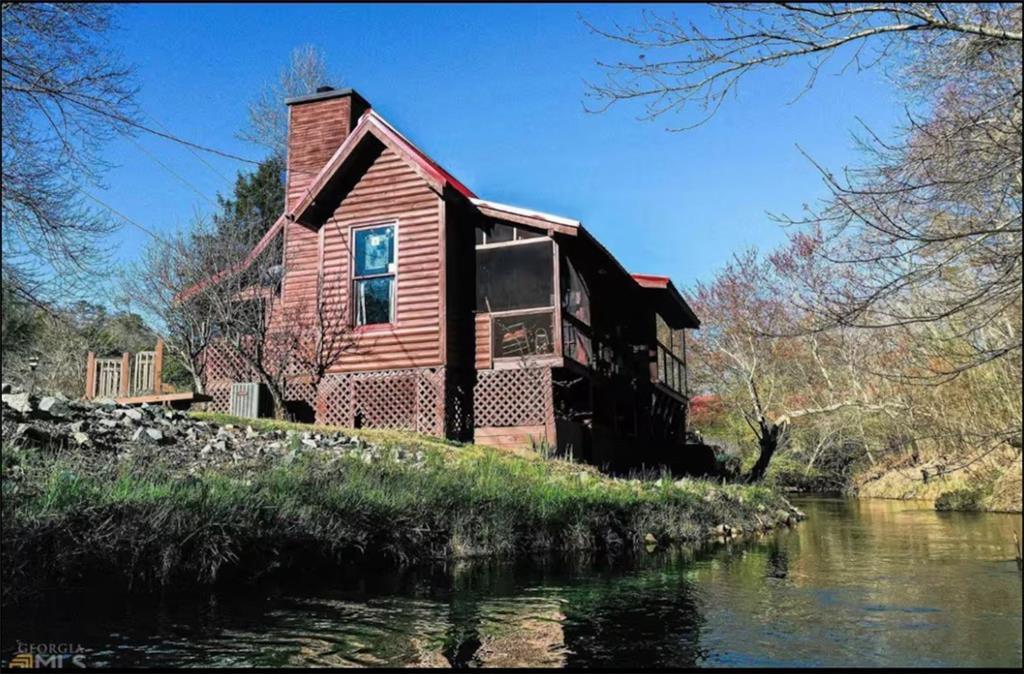 Welcome to your own slice of paradise nestled in the Cherry Log Mountain community! This unique property boasts over 1 acre of tranquil beauty, situated along 500+ feet of Cherry Log Trout Creek and Bear Lake. Step inside to discover this charming private cabin offering a perfect blend of rustic charm and modern convenience. The highlight of this cabins is the massive primary bedroom flooded with natural light from numerous windows overlooking Chery Log Creek, creating a serene oasis for relaxation. Cozy up by the stack stone fireplaces on chilly evenings or step outside to unwind in the soothing hot tub. The open-concept living area provides a seamless flow between the kitchen, dining, and living spaces, ideal for entertaining guests or simply enjoying quality time with loved ones. The kitchen features stainless steel appliances, adding a touch of elegance to the rustic ambiance. Conveniently located just 10 minutes away from both Blue Ridge and Ellijay, this property offers the perfect balance of privacy and accessibility to amenities and attractions. Whether you're seeking a weekend getaway, a short-term rental business or a permanent residence, this property offers endless possibilities for creating cherished memories in the heart of nature. The location is the best in all of Blue Ridge. Don't miss out on the opportunity to make this idyllic retreat or turn-key successful cabin rental business your own!