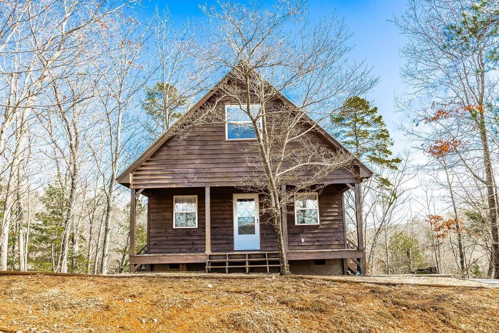 Fantastic 2/1.5 opportunity in Talking Rock Creek Resort! Enjoy utmost privacy on top of a ridgeline set on 1.15 beautiful wooded acres. Lot price + build price is likely higher than this opportunity, making it the deal to get into Talking Rock! Wildlife abounds in this community and it could not be more peaceful and quiet outside on either the large front porch or the unobstructed back deck. Inside, you'll find two bedrooms, one a loft with a half bath upstairs that could actually sleep 4-6 with the size, and the other a primary bedroom with two closets and a picturesque view of the woods. Main baith is adjacent to the primary bedroom and includes the laundry. You also have a cozy living room & kitchen area that has spaces and a water line for a full size refrigerator and an oven to take it to a true full kitchen. The amenities in the community are abundant - fishing in the creek, multiple pools & tennis courts, gym, hiking trails, etc. Come be part of nature or invest in an affordable short term rental to give others that opportunity for the weekend. Don't miss your opportunity to get into a phenomenal community at a great price!