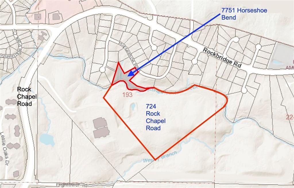 This 25-acre property includes 7751 Horseshoe Bend and approximately 22 acres subdivided from 724 Rock Chapel Rd. Zoned R100, it allows for single-family residential development with minimum lot sizes of 15,000 sq. ft. With strong demand for housing in the Atlanta metro area, this site offers incredible potential for developers and investors. Conveniently positioned near major highways, shopping, dining, and employment centers, the property provides easy access to key amenities, including The Mall at Stonecrest and Arabia Mountain National Heritage Area. Developers may explore rezoning options for higher-density residential, mixed-use, or commercial development. Don’t miss this rare opportunity to invest in one of Lithonia’s most strategic land parcels.