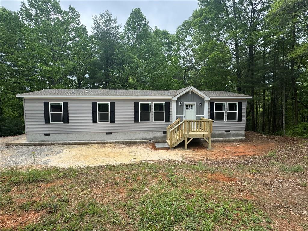 Welcome to your new 2025 home, a perfect blend of modern comfort and stylish design, 1,568 sq ft and nestled on just over an acre. Situated in the highly sought-after Gilmer High School district. Step inside to discover an inviting open floor plan that boasts 3 spacious bedrooms and 2 baths. The 30-year architectural shingle roof ensures durability and peace of mind, while the sleek, all-new stainless steel appliances add a touch of elegance to your daily life. The kitchen features a farmhouse sink and a central island. The Carrier heating and air system and Rheem Pro hot water heater guarantee year-round comfort. Vinyl flooring throughout with carpet in the bedrooms. The living room is a true showstopper with its rustic wood beams and a built-in entertainment center. Don't miss this incredible opportunity to own a beautiful new home that offers the perfect blend of comfort, style, and functionality, all in a prime location! *Owner/Agent *Manufactured home (drywall/tile shower/higher end finishes) *Gravel Road- (part of Rogers Creek) *New will, permanent block foundation, home sits on a poured slab, private/wooded lot, several Mountain Views(seasonal), drywall, tile shower, wood style beams, 30 year shingle roof, vinyl siding, and more! Appraisal (desk) is well above asking price!