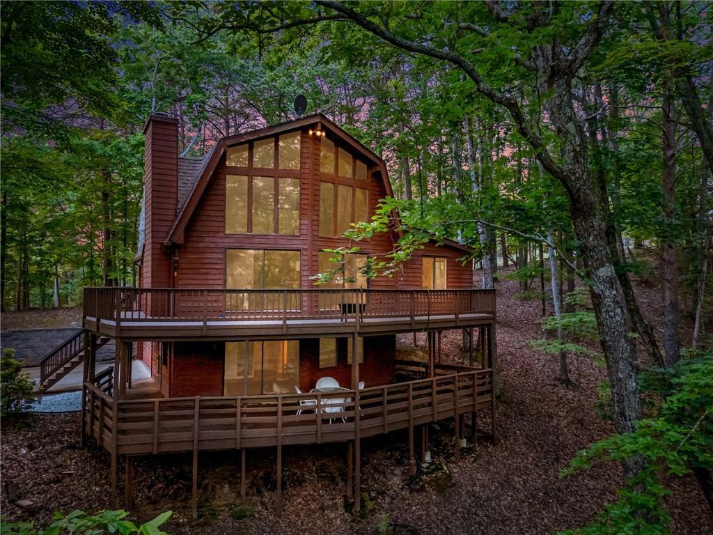 Welcome to your dream retreat nestled in the heart of nature! Tucked away on an expansive and already combined double lot in the highly sought-after Lake Arrowhead community, this stunning cabin-style home offers the perfect blend of privacy, serenity, and rustic elegance. Surrounded by towering hardwoods and blanketed in dappled sunlight, this secluded sanctuary boasts breathtaking forest views from every angle. Floor-to-ceiling windows frame the natural beauty outside, while expansive wraparound decks on both levels create seamless indoor-outdoor living—perfect for morning coffee with the birds or starlit dinners under the canopy of trees. Step inside to discover a spacious and airy layout with soaring ceilings and warm wood finishes that echo the tranquil surroundings. The open-concept great room is anchored by a cozy fireplace and flows effortlessly into the kitchen and dining areas—ideal for entertaining or simply unwinding in peace. With plenty of outdoor space and no close neighbors in sight, this property is a rare find for those who crave a connection to the outdoors. Whether you’re relaxing with family, hosting guests, or watching wildlife roam, every moment here feels like a getaway. Lake Arrowhead offers the best of North Georgia mountain living, with amenities including a pristine private lake, an 18-hole golf course, pickleball, hiking trails, and more—all just a short drive from metro Atlanta. Come discover your very own forest haven—where peace, privacy, and natural beauty come together to create something truly magical.