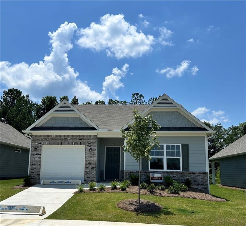 New Construction - READY NOW! Our beautiful brand-new Augusta floor plan boasts 2 bedrooms & 2 bathrooms. The spacious front entrance foyer leads into a bright open concept kitchen and living room. With a lovely QUARTZ countertop in the kitchen and a deep SINGLE bowl sink, and dishwasher in the island making clean up a breeze. The living room brings daylight into the spaces with 3 windows and a glass patio door. Even on cloudy days you have a multitude of LED lighting in the living room and kitchen to keep things bright. Moving from the living room to the patio is a delightful outdoor space that is covered and ready for patio furniture. The kitchen boasts white painted cabinets a large island – ready for barstools - and a pantry. Stainless steel dishwasher and gas range along with disposal are ready for your use. This home has flooring throughout in warm tones inclusive of LVP, Vinyl & Carpet. The large owner’s suite is amply sized for a king size bedroom suite. The owner’s bathroom boasts a huge 5-foot shower with fiberglass surround for easy cleaning. Dual vanities with ample storage space and a cultured marble countertop. The commode room is tucked away for privacy. The owner’s closet is huge with a framed opening into the laundry room for ease of use. The secondary bedroom is ample-sized and at the opposite end of the home for added privacy for overnight guests. Or, set up as you choose for craft space or office. The secondary bathroom has a tub/shower and single vanity with cultured marble countertop. Both bathrooms boast raised counter height and raised/elongated commodes. The home boasts an exterior paint scheme pleasing the eye of Chelsea Gray with white trim and white gutters with an accent of brick. It’s stunning. The exterior is concrete siding with Sherwin Williams paint and boasts Low E energy efficient windows. The community has central mailboxes with key access for your privacy. This community is Active Adult 55+. The HOA monthly fees cover lawncare/landscaping maintenance and exterior maintenance. (See covenants for specifics.) This home is ready now. Also, this home has seen a price reduction. And please inquire with the onsite agent about rate buydown with preferred lender OR incentive towards closing costs.