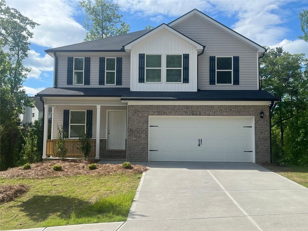 Finished construction and ready to move-in today. Step into the Lovely Kyndle Plan and experience its captivating features! This beautiful 4-bedroom, 2.5-bathroom home, complete with a 2-car garage offers a seamless open design perfect for hosting gatherings with family and friends. The kitchen features elegant granite countertops, tile backsplash, and stainless-steel appliances (microwave, dishwasher, and freestanding stove). Stylish 36" soft close cabinets enhance the open-concept dining area. The living room boasts a relaxing fireplace, creating a cozy atmosphere. Enjoy the abundance of recessed lighting throughout the home, along with luxury vinyl plank (LVP) flooring on the main level and in the wet areas of the second level. Stairs, hallways, bedrooms, and closets are carpeted for added comfort. Downstairs you will find an unfinished basement, a blank canvas to create your dream living area and upstairs, you'll find a conveniently located laundry room amongst 4 modestly sized bedrooms. The spacious primary suite includes a walk-in closet and a luxurious bathroom, which features a tile shower stall, granite countertops, and a dual vanity. The secondary bedrooms offer ample storage with generously sized closets, and there's an additional bathroom equipped with elegant fiberglass shower/tub combos and granite countertops. This beautiful new home is located in one of the top ten school districts in Georgia and is currently move-in ready. It will only be available for a limited time, so don't miss this amazing opportunity. All photos are updated and show the actual home in completion. Don't miss out on incredible buyer incentives! You could qualify for closing cost assistance or have the option to reduce your interest rate with the preferred lender. Reach out today to learn how you can secure one of these amazing new construction homes and take advantage of these fantastic benefits.