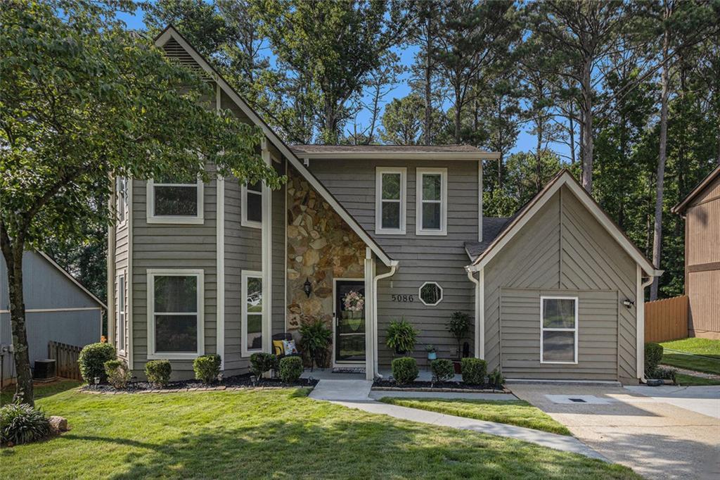 Spacious and Well-Maintained Home in Sought-After Stone Mountain Neighborhood! Welcome to this beautifully landscaped 3-bedroom, 2.5-bath home offering comfort, flexibility, and charm. Located in a quiet, established community, this home features laminate floors throughout the main living areas and bedrooms, with carpet in the flex room and tile/vinyl in the kitchen, laundry, and bathrooms. Upstairs, you’ll find three spacious bedrooms and two full baths. The main level includes a separate living room and dining room, a cozy flex/den space (converted from the original garage and fitted for central heat and air to be installed, if desired), a powder room, and an inviting eat-in kitchen with stainless steel appliances and custom cabinets. Step directly from the kitchen onto a private backyard patio—ideal for relaxing or entertaining. Privacy fence around the front sides and back of the home. Backyard features a storage shed, and a sprinkler system (that serves both the front and back yards), complementing the plush “zoysia” grass and landscaping. Parking is available in the driveway and the extended driveway on the side of the home—perfect for multiple vehicles. This home is move-in ready and offers everything you need for comfortable and stylish living!