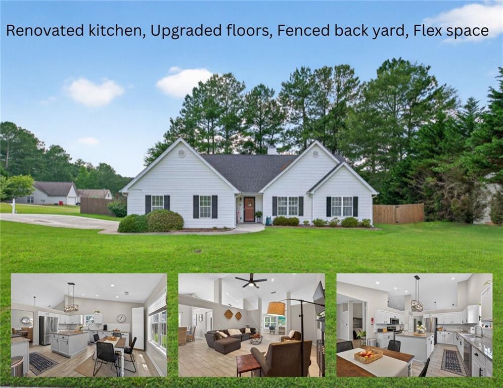 STUNNING, RENOVATED KITCHEN AND UPGRADED FLOORING THROUGHOUT, LARGE FENCED IN CORNER LOT, ADDITIONAL FLEX SPACE OFF FAMILY ROOM. This home, with just a 5-year-old roof, features custom kitchen with grand island, plenty of cabinet space, and high ceilings that fill the home with natural light create a bright and airy feeling throughout. Enjoy both the large dining room and sunny eat in kitchen. The spacious family room opens to versatile flex space- perfect for sitting/keeping room, sunroom, home office, or playroom. Split bedroom layout offers privacy and flexibility making it ideal for families, roommate, or multigenerational living. Outside boasts a large, fenced in, corner lot just off a quiet cul-de-sac and includes an extended patio that provide fantastic setting for entertaining, relaxing and play! Shed allows for additional storage space for lawn equipment and other storage needs. All just minutes away from schools, and the Bethlehem/Barrow Crossing Shopping, movies, and dining. Schedule your tour today!