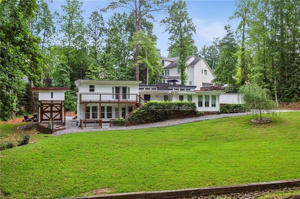 Your mid century modern dream home has hit the market! Nestled on almost an acre, steps to award-winning King Springs Elementary, every surface of 951 Reed Rd has been thoughtfully updated. Step through the front door and custom mud-area built-ins await. Vaulted ceilings on the main give a bright and airy feel to the 2 livings spaces. The kitchen features ample white shaker cabinets, granite countertops, stone tile backsplash, and a breakfast bar. If you love outdoor living, there’s a large deck off of the front of the house overlooking the large front yard plus endless possibilities with seating out the back. Upstairs you’ll find the master bedroom which boasts a large walk-in closet and newly-renovated bathroom. The bathroom features a large shower, tub and dual vanities. 2 secondary bedrooms and updated full bath round out the upstairs. Downstairs you’ll find will find a large additional living space, 1 bedroom and updated full bath. The large laundry room leads to an additional bedroom or office space with a loft, great for lounging or gaming. Don't miss the ample storage closet under the stairs. Newly-constructed outbuilding next to the house is great for a workshop, outdoor storage or could be finished in the future. Easy walk to King Springs Elementary and Griffin Middle. Excellent Smyrna location with great proximity to the E/W connector, 285, Smyrna Market Village and The Battery.
