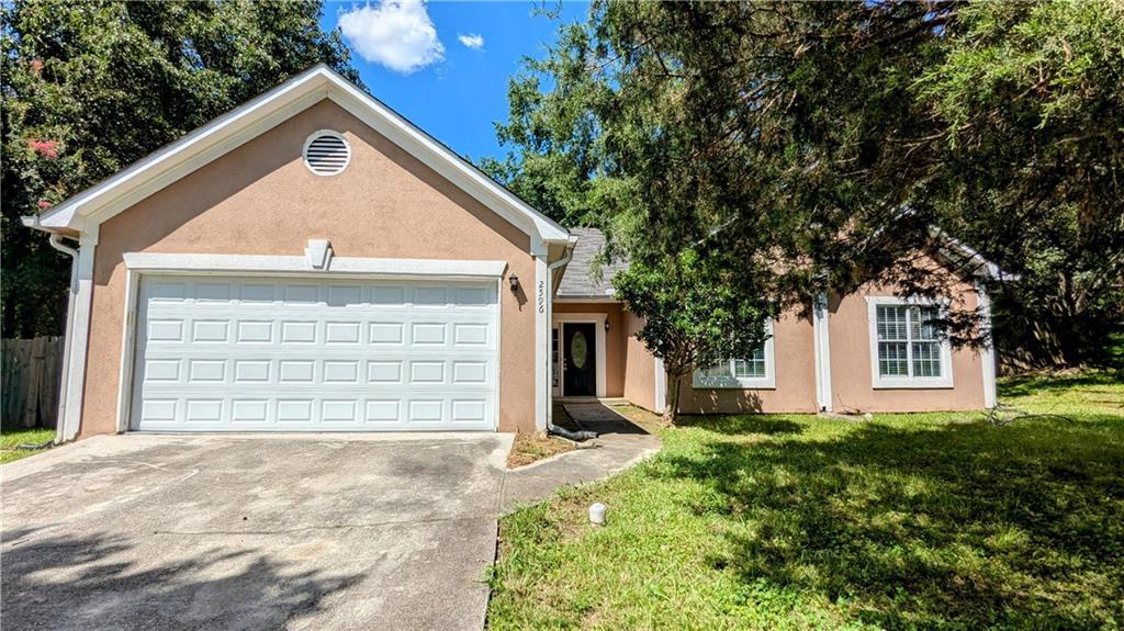 Welcome to this charming 3-bedroom, 2-bath ranch in Ellenwood. This home features a bright and airy living room with vaulted ceilings and a cozy fireplace, perfect for relaxing evenings. The eat-in kitchen offers ample cabinet space and a breakfast area perfect for cooking and entertaining. The primary suite includes a spacious layout, double vanities, and a private bath with a soaking tub and separate shower. Two additional bedrooms provide plenty of space for guests, a home office, or hobbies. Enjoy the outdoors in your private backyard, ideal for entertaining or unwinding. This stucco home also features a two-car garage for added convenience. Agents: Please read private remarks/look at the offer guidelines in docs before calling, it should answer all questions you have.