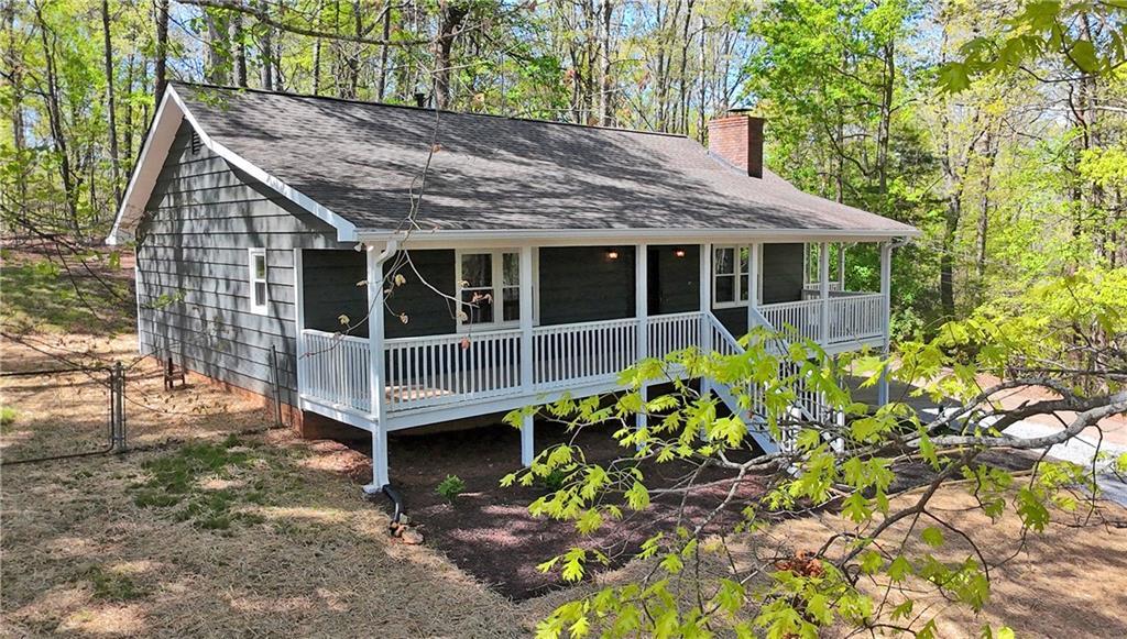 This ranch style cottage is situated on a quiet wooded hilltop and has just been completely renovated and updated. Everything is new including HVAC, plumbing fixtures, lighting, flooring, interior and exterior painting, doors and door hardware, new high efficiency tilt-in glass windows, flooring, kitchen cabinets and appliances, plumbing fixtures, sheetrock and trim, closet shelving, whole house fan, gutters and downspouts, landscaping, parking pads. No HOA so park your RV or boat on one of the new parking pads. The roof is five years old. The home also features large covered front and side porches and a fenced backyard is perfect for dogs. Inside features a wood burning, rock-faced masonry fireplace, perfect for those chilly winter nights. Located less than a mile from Reinhardt University, this property is across the street from the college's 7 mile system of mountain biking and hiking trails. The square footage from the public records does not include the full daylight basement which is heated and cooled and ready for an additional bedroom, office, bath or rec room. The owner is a builder and will work with the new owner to build their dream at a minimal finishing cost providing endless possibilities for customization. This home is move-in ready and is perfect for any family, investors looking for a rental property or retirees as a second home. And Canton, booming with new retail, restaurants and entertainment is five miles away. The Callahan public golf course is one mile away and the new Publix grocery store at Laurel Canyon Village is three miles away. The property is like living in the quiet peaceful mountains but close to all the city amenities.