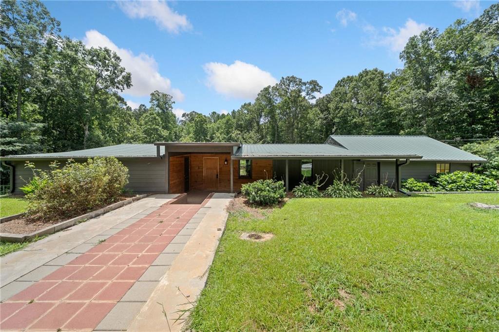 Rustic charm meets modern comfort on this beautifully renovated home tucked away on 1.21 private, wooded acres. From the vaulted ceilings with exposed beams to the custom wood paneling and striking bamboo floors with detailed inlays, every corner of this home offers something unique. The open-concept living space features an electric fireplace and flows into a stylish kitchen with shaker cabinets, butcher block countertops, stainless steel appliances, a farmhouse sink, and thoughtful updates throughout. The bathroom stands out with a tiled tub/shower accented by mosaic details and a custom vanity. Step outside to a freshly painted exterior, a spacious back deck, covered parking with both a carport and detached garage, plus an outbuilding for extra storage or workshop space. With a brand-new HVAC system and a peaceful setting just minutes from town, this one is truly move-in ready and full of character!