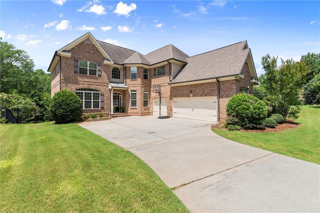 Absolutely phenomenal executive home in the highly sought-after Pope High School district, nestled within a quiet boutique neighborhood on a beautifully landscaped ¾-acre lot. Enjoy complete privacy and a spacious backyard with plenty of flat lawn — perfect for outdoor fun, pets, or future pool plans. This impeccably maintained home blends timeless style with everyday functionality. At its heart is a bright, open-concept kitchen featuring a large center island, walk-in pantry, and effortless flow into the living space — perfect for entertaining and family life. A stunning double-sided stone fireplace anchors both living areas, creating warmth and character throughout the main level. Additional main-floor highlights include rich hardwood floors, abundant natural light, a dedicated home office, and a stylish dining room. A guest suite on the main level adds flexibility for visitors or multigenerational living. Upstairs, the spacious primary suite offers a serene retreat with a cozy sitting area, spa-like bathroom with walk-in shower and soaking tub, and an oversized walk-in closet. Three additional bedrooms include one en-suite and a Jack-and-Jill, each with generous closet space. A large media or bonus room provides the perfect space for movie nights, a playroom, or homework zone. Brand new carpet was just installed throughout the upper level. Step outside to enjoy the peaceful screened-in porch, grilling deck, and lower-level patio — all overlooking a fully fenced, flat backyard oasis. A spacious 3-car garage completes this exceptional property.