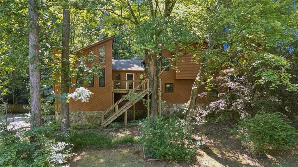 Situated in the beautiful Peachtree Walk community in North Gwinnett County, this split level home makes you fell like you're in a tree house! Welcome inside through the foyer to a Fireside Great Room & Dining Room with updated windows offering views of mature landscaping and plenty of trees. The Kitchen is equipped with upgraded appliances and has access to the private, wooded backyard and massive deck where you can enjoy that morning coffee or evening cocktail. Go downstairs to find an amazing Den with a bar, set up for those family movie nights or the big game. There is also a bedroom, full bath and laundry room on the lower level. Upstairs is the secluded Primary Suite with 2 Walk-in closets, Dual vanities, Whirlpool Soaking tub and separate Shower. Two additional bedrooms share a bathroom upstairs as well. The extra space in the garage provides plenty of storage and a workshop with work bench for all of life's projects. All of this is located in a serene community on over 3/4 acre in North Gwinnett with no HOA! Just minutes from TPC Sugarloaf, Suwanee, John's Creek & I-85.