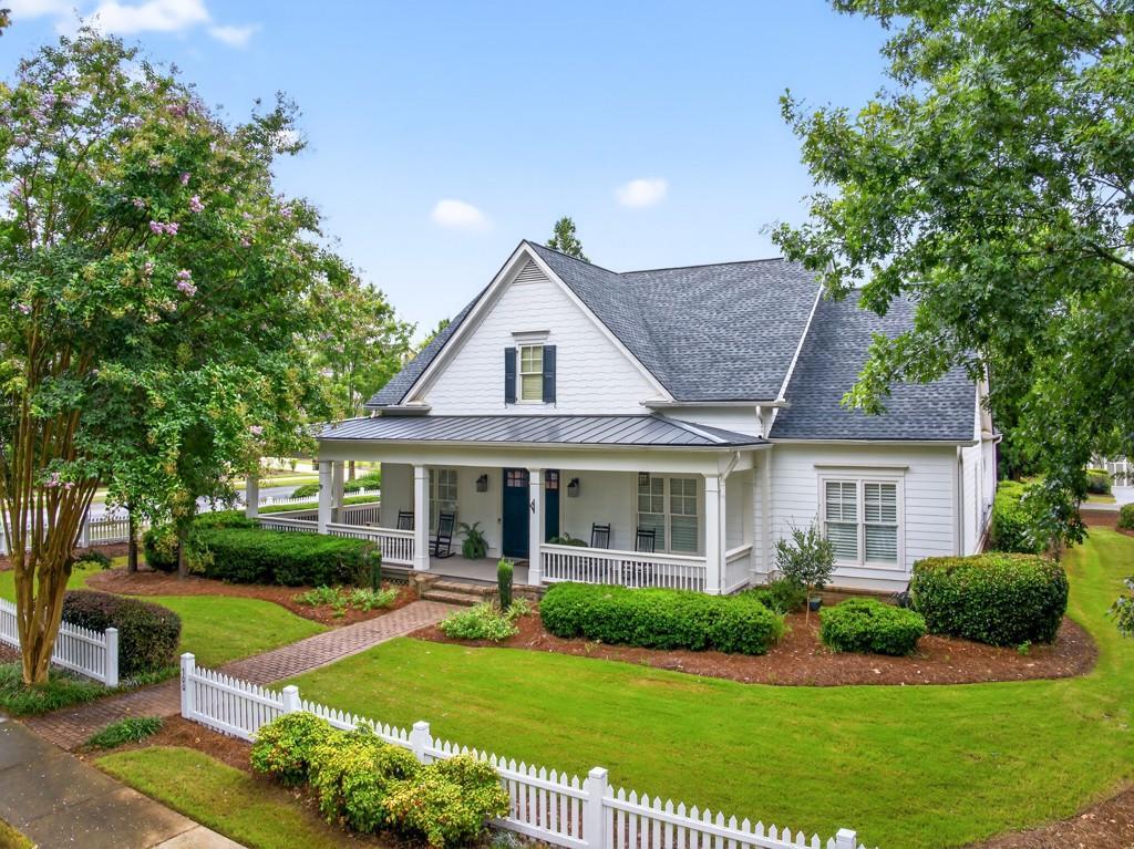 Welcome to this luxuriously upgraded 5-bedroom, 4-bathroom home in the highly sought-after Georgia Club, a gated golf course community known for its Southern charm and resort-style amenities. Situated on a premium corner lot, this beautifully maintained home features a white picket fence, a charming wraparound front porch, and a rear-entry garage, all adding to its curb appeal. Inside, enjoy new flooring, fresh interior and exterior paint, and thoughtful architectural details throughout. The spacious living room features a coffered ceiling, creating a sophisticated and inviting space for gatherings. The kitchen is accented with brick details, blending rustic warmth with modern utility. Perfect for remote work or study, the private office includes custom-built-in shelving. The oversized primary suite is a true retreat, featuring two large custom walk-in closets and a spa-inspired en suite bathroom with a large walk-in shower, double vanities, and elegant finishes. Enjoy year-round efficiency with a solar energy system and keep your landscaping lush with the automated sprinkler system. Located in The Georgia Club, residents have access to world-class amenities: golf, pools, tennis courts, clubhouse, fitness center, and walking trails. This home offers a rare combination of classic Southern charm and modern luxury in one of Georgia's most desirable communities. Seller is offering Buyer a 2-1 Rate Buy Down with acceptable offer. Reach out to Joshua Egnoski to find out how much you can save per month with this fantastic program!