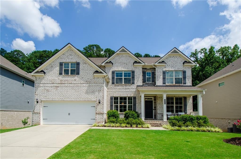 Immaculate home with full finished daylight basement and bedroom on the main level located in the popular Landing at Kelly Mill community. MUST SEE Backyard with lots of fruit trees (Mulberry, Peach, Persimmon, Fig, Pear and more. This home is beautiful w/ a stunning use of colors that give a perfect touch. The flat front yard and covered front porch are super nice features and as you enter the home the cozy living room and dining room are perfect for entertaining. The family room has built-ins and lots of natural light - notice the large windows and great orientation fill every room w/ beautiful natural light. You love this kitchen with it beautiful white cabinets, large island and gas cooktop plus a double oven & an open view of the family room. This layout is wode open and perfect for everyday living and entertaining. The open feel of this home is wonderful. The bedroom and full bath on the main are very convenient - or you can use that bedroom as an office if you prefer. The drop zone as you enter from the garage is a great way to stay organized. The spacious primary bedroom has a trey ceiling and wonderful view of the tree lined backyard (yes lots of natural light). The primary bathroom is large w/ dual vanities, tiled floor/shower and a large walk-in closet. There are 3 other bedrooms upstairs - each with plenty of storage plus a media room (could be another bedroom). There is a private on-suite and a jack-n-jill bathroom also plus the laundry room. The finished basement is a favorite spot to just hang out - it has a bedroom plus a full bathroom and a large open room - use your imagination makes a perfect game room, den office. There is a media room in the basement perfect for movie nights,game days and a home gym if you prefer. there is lots of space!! Lots of possibilities. The backyard is HUGE! - It is a great play area and perfect for backyard BBQ's and harvesting the fruit trees is a great experiences. At the back of the backyard is creek. There is a list of the trees in the backyard at the home. This is a great, friendly community near the highly rated Alliance Academy High School, close to Kelly Mill Elementary School offering an exceptional blend of luxury, location, and convenience. Schedule your tour today!!