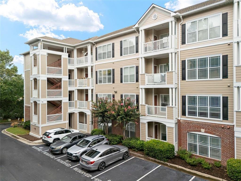 Don’t miss your chance to own this beautifully updated, move-in ready top-floor condo in the gated and meticulously maintained Terraces of Dunwoody community! This spacious, one-level end unit offers quiet serenity, a larger footprint and is perfectly positioned in a prime Dunwoody location just minutes from shopping, dining, and quick access to I-285 and GA-400. Step inside to find freshly painted interiors that feel bright and welcoming. An elegant arched doorway leads from the foyer into a sunlit open-concept living and dining area, featuring a dramatic tray ceiling with crown molding and a wall of windows that flood the space with natural light. Step out onto your private covered balcony and take in peaceful, tree-lined views—your own serene retreat. The full-featured kitchen opens to the main living space and boasts ample cabinet storage and counter space, a convenient breakfast bar, freshly painted cabinets, and newer stainless steel appliances, including an electric range and refrigerator. A newer dishwasher and built-in microwave add to the functionality. The generously sized bedroom includes a walk-in closet with a built-in storage system and enjoys soft, natural daylight. The bathroom features a combination tub/shower, extended vanity, and an additional storage cabinet. Additional perks include an assigned parking space close to the elevator and mailboxes. Water and valet trash service are included in the low HOA fee, and residents enjoy access to a sparkling pool, fitness center, clubhouse, outdoor grill area, and dog walking paths. The Terraces of Dunwoody is FHA-approved and offers an unbeatable combination of location, value, and lifestyle. Come see why this condo is the perfect place to call home!