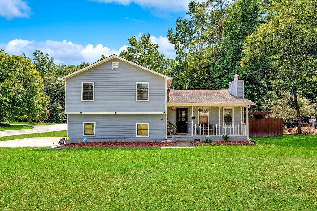 Beautifully maintained multi-split home on a corner lot in an HOA-free community in the heart of Snellville. A welcoming covered front porch opens to a bright living room filled with natural light, centered around a cozy fireplace and flowing into the dining area. The kitchen features granite countertops, custom tile backsplash, stainless steel appliances, and rich cabinetry. Step outside onto a spacious deck overlooking a fully fenced backyard—ideal for entertaining. Upstairs offers a tranquil primary suite with updated bath, granite-top vanity, and shower-tub combo, plus two additional bedrooms and a second updated full bath. The lower level includes a large 4th bedroom perfect for guests, office, or flex space, an updated half bath with laundry, direct backyard access, and an attached one-car garage. Durable hard-surface flooring throughout—no carpet. All kitchen appliances, washer, and dryer remain. Ideally located near Country Club of Gwinnett, Lenora Park, and Briscoe Park with trails, playgrounds, sports courts, pool, and a 6-acre lake. Quick access to US-78, Scenic Highway, shopping, and dining.