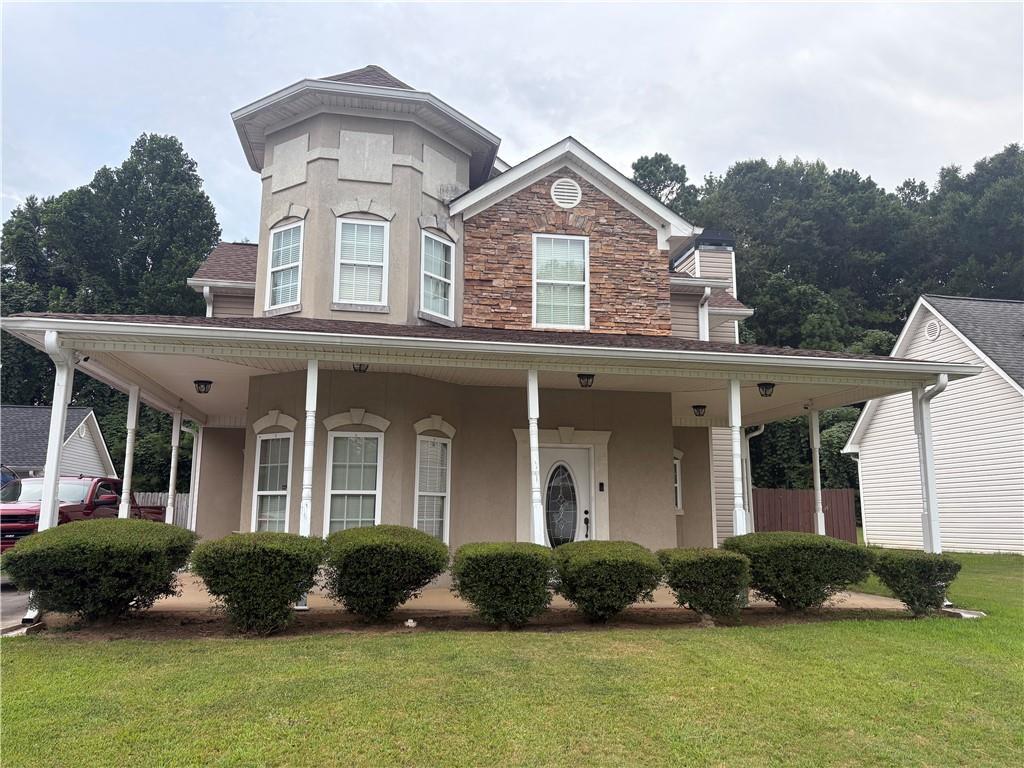 This almost stepless Craftsman home in Dogwood Trace has 3 bedrooms and 2.5 baths. It's got an open concept with a big family room that has a fireplace, a separate dining room (which could also be an office, playroom, or additional bedroom), and a large kitchen with stainless steel appliances. Master bedroom has a sitting area w/fireplace along with en suite with a jetted garden tub, a tiled shower, dual vanities, and a big walk-in closet. Upstairs, there are two more spacious bedrooms, a laundry room, and a second full bath. There's also a detached 2-car garage with a covered breezeway that leads into the kitchen. The privacy-fenced backyard is perfect for gatherings and enjoying the wooded views. Plus, it's within walking distance to the basketball court, clubhouse, and pool. And it's super convenient to shopping, dining, the hospital, and the interstate.