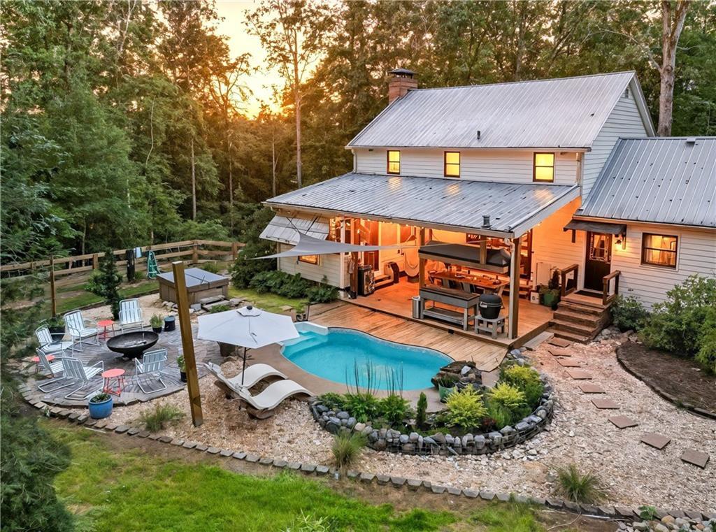 Welcome to 181 Gilreath Way in picturesque Dahlonega, GA! This completely renovated 3-bedroom, 3-bath home sits on 11.43 private, gated acres with a second building site-perfect for a family compound or guest home. Priced below appraisal, this property combines modern comfort with serene mountain living. Step inside to a bright, inviting living room featuring a whitewashed brick fireplace with a rustic wood mantle, large windows bringing in natural light, and a cozy, open layout perfect for gatherings. The chef-inspired kitchen showcases granite countertops, two-tone cabinetry (white uppers and deep green lowers), stainless steel appliances, a gas range, and a charming window over the sink that frames peaceful woodland views. Outdoor living shines with a screened porch, covered deck with glass garage door, and a spectacular fenced backyard oasis featuring a small dipping pool, hot tub, and fire pit-ideal for relaxing or entertaining under the stars. Additional recent improvements include a pole barn (2023), brand-new electrical panel (2025), and a whole-house generator (2022). The property includes a creative "she shed," a 2-car garage, and essential utilities with well and electric. Enjoy seasonal mountain views, sunrises and sunsets, and private, serene living with no HOA-all just minutes from downtown Dahlonega, the University, shopping, hiking trails, waterfalls, and rivers. Whether you're looking for a primary residence, Airbnb investment, or mountain retreat, this property has it all.