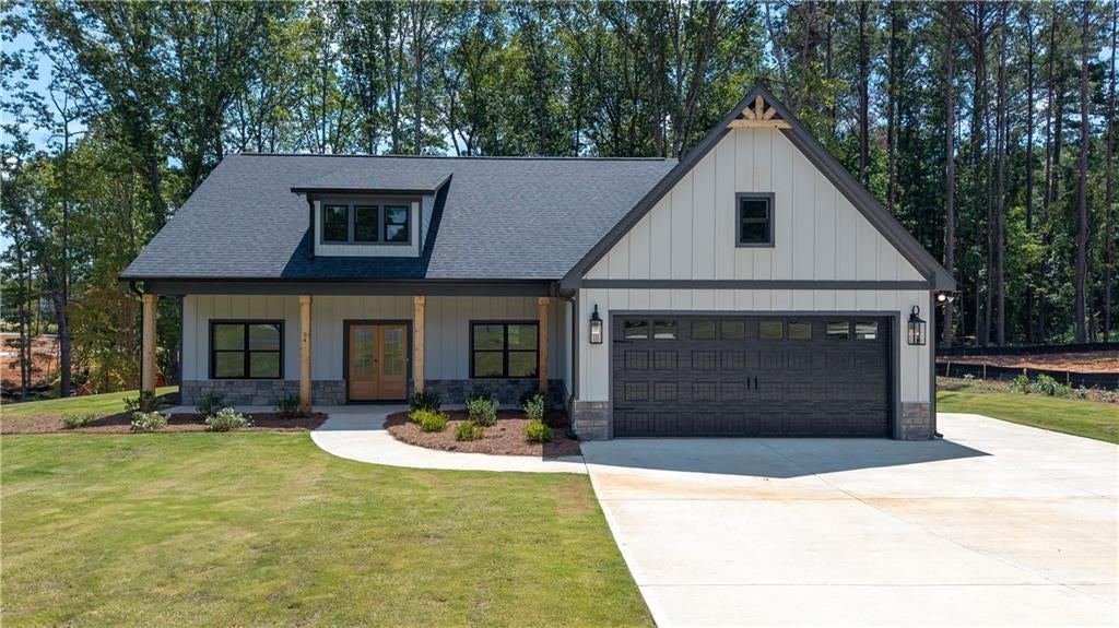 Modern Farmhouse Style Ranch Home Loaded with Custom Features! and Situated on a One-Acre Lot! Board and Batten Exterior Accents along with Stain Grade Double Front Door, Front Porch Post & Crowfeet Accents! Rock Water Table! Black Exterior Window Frames! Covered Front and Back Porch with Stain Grade Wood Ceilings! Custom Paint Colors Inside and Out! Architectual Shingles! 3 Bedrooms and 2.5 Baths! Kitchen boasts an Apron Front Farm Sink! Tile Backsplash! Wood Vent Hood! Soft Close Cabinets! Deep Refrigerator Cabinet! Oversized Kitchen Island! Under Mount Drawer Style Microwave! Upgraded Countertops! Walk in Pantry! This Awesome Open Concept Floor plan has a large great room and features a Stacked Rock Fireplace with rock to the Ceiling plus Cedar Stain Grade Mantle! Built-in Cabinetry on either side of the Fireplace! Master Bedroom with Trey Ceilings and Master Bath features a Free-Standing Garden Tub! Separate Tile Shower w/ Frameless Glass Shower Door! Double Vanity, Framed Mirrors, Granite Countertops and Tile Flooring! LVP type Hardwood Flooring in the Living Room, Kitchen, Dining Room, Hallways, Pantry, Mudroom and Powder Room! Tile Flooring in the Laundry Room and Both Full Baths! Upgraded Wainscoting Trim in both the Living Room and Dining Room! Kitchen Level Entry Two Car Garage with 8 ft tall, insulated garage door with windows and Opener plus Two Remotes! Plus, Additional Parking Pad area!!