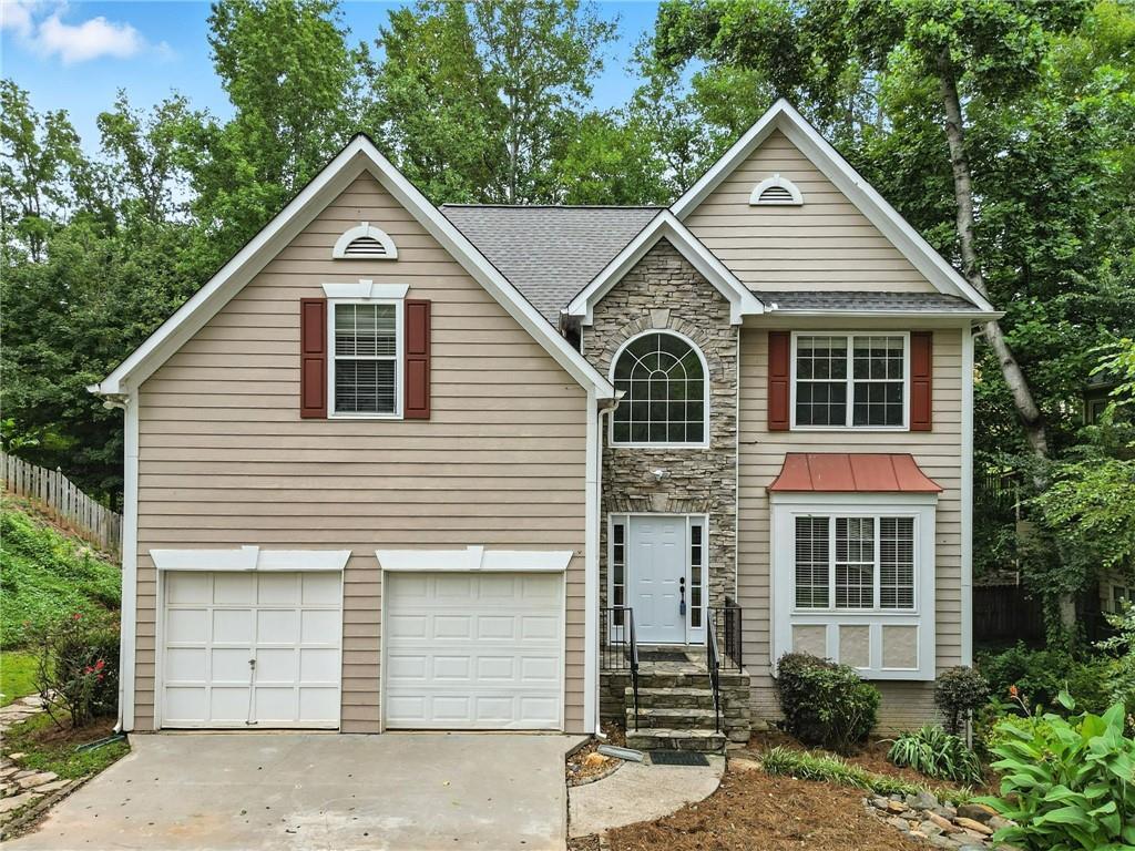 Great value in Towne Lake's Wyngate subdivision for a home with a full basement that already has a finished bath! Brand new carpet upstairs !! This 4-bedroom, 3.5-bath home offers a spacious fenced backyard and a basement suite with full bath ready for finishing touches—just add flooring and a mini split. Features include a living/dining combo, separate family room, updated kitchen with white cabinets, granite counters, breakfast area, new range, and new sliders to the deck. The upstairs master suite has a large walk-in closet, double vanity, and separate tub and shower. Three more bedrooms, one with built-ins, and a full bath. Enjoy the large backyard with firepit, patio, deck, and lots of room to play. Wyngate offers 2 pools, active swim team, clubhouse, tennis, basketball, pickleball, playground, sidewalks, and active social activities. Convenient to Woodstock Downtown, Lake Allatoona, and all the shops and restaurants in Towne Lake.