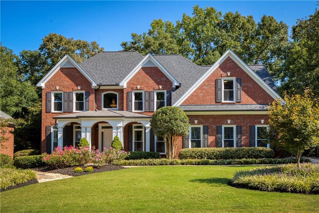 Nestled on a private, level, and wooded .70-acre lot, this exceptional residence is in the prestigious and highly desirable Vinings Estates community, known for its resort-style amenities and upscale living. Meticulously maintained, this stunning three-sided brick home offers more than just a place to live—it offers a lifestyle of luxury, comfort, and convenience. The open floor plan welcomes you into a grand two-story entryway leading to into a spacious entryway with a stunning crystal chandelier, enjoy gatherings in the formal dining room with a sparkling crystal chandelier, a dedicated office, and enclosed sunroom—perfect for a home office, reading nook, or quiet relaxation. The gourmet kitchen is a chef’s dream, featuring freshly painted cabinetry, sleek new quartz countertops, premium stainless-steel appliances, a built-in wine cooler, and an expansive wraparound island with seating for up to eight—perfect for entertaining. A sunny breakfast area overlooks the level fenced backyard, offering a tranquil, private wooded view. The great room is full of natural light through soaring windows and features a cozy fireplace next to custom built-in bookcases, creating an inviting space for gatherings or quiet moments. Upstairs, the oversized primary suite is a true retreat, featuring a newly renovated marble ensuite bath with a walk-in shower, soaking tub, heated tile floors, dual vanities, and custom walk-in closets. An additional flexible space within the suite is perfect for a fitness area or private office with built-in desk / file cabinets. Three additional bedrooms offer ample space and convenience, including an updated Jack-and-Jill bathroom layout and updated private full bath. The expansive finished terrace level is designed for versatility, featuring a theater room with seating included, wet bar, custom built-in stained cabinetry, a full bath, gas fireplace, and the flexibility to create an additional bedroom, office, or full kitchen. Outdoor living is equally impressive with a beautifully landscaped private backyard, an expansive oversized Trex deck with retractable awning for shaded, lower-level retreat with covered patio, underdeck system, and hot tub —perfect for entertaining or quiet relaxation, rain, or shine. Additional upgrades and improvements include brand new roof, all new energy-efficient windows, upgraded attic insulated with exclusion, new hot water heater, custom window shades, whole house humidifier, HVACs (main, upper) new within last 5 years, equipped with a variable HVAC system featuring advanced UV and allergy filtration, plus a whole-house water filtration system and dedicated kitchen drinking water filter, brand new refinished hardwood floors, new carpeting, and fresh paint, ensuring a pristine move-in-ready condition.