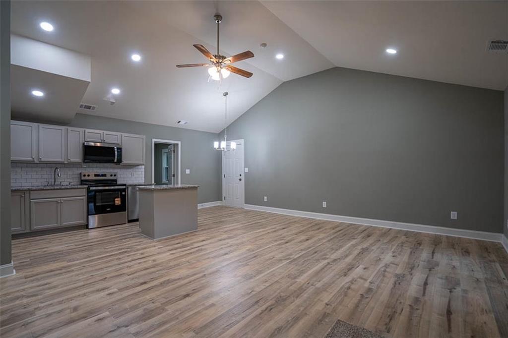 Stunning fully renovated home featuring soaring ceilings in the living room and kitchen, an open-concept design, and elegant recessed lighting. The brand-new kitchen includes a modern microwave, stylish cabinets, and new flooring. Durable laminate floors flow through the living areas and bathrooms, while all three bedrooms feature plush carpeting. Additional upgrades include a new air conditioning system and a new roof, providing comfort and peace of mind. The home offers two full bathrooms, including a spacious master suite with a walk-in closet, a large private bath, and direct access to the back porch-perfect for enjoying morning coffee, romantic evenings, or peaceful moments surrounded by nature at sunrise or sunset. This move-in-ready home blends comfort, style, and modern upgrades in every detail.