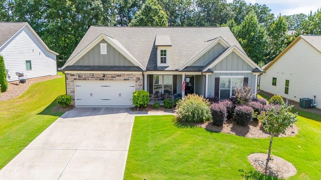 Welcome to 740 Lakeview Bend Circle, a charming, craftsman-style ranch in Jefferson's desirable 55+ community of Northminster Place. This 3-bedroom, 3-bath home offers a functional layout with a spacious and open living area, a stone fireplace, a light-filled kitchen with granite countertops, a gas range, large island with an attached formal dining room. The private primary suite overlooks the backyard and has a double vanity bathroom, walk-in shower and a large walk-in closet. Two additional bedrooms are the perfect size to provide flexibility for guests or a home office. Outdoors, enjoy a fully fenced backyard with a covered patio- perfect for entertaining- and a storage shed that remains with the property. With curb appeal, community clubhouse, sidewalks, and lawn care included, this gated community offers comfort and convenience just minutes from downtown Jefferson. Move in ready so schedule your showing today!!