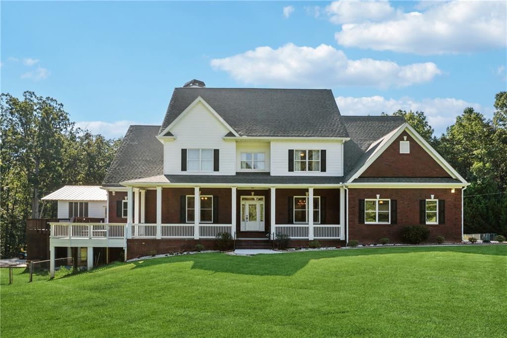 Welcome to your charming estate home set on five private acres—perfect for family living and entertaining.Inside, you’ll find soaring ceilings, spacious rooms, elegant arches, and beautifully contoured walls. The home opens with a formal dining room and living room, creating a warm and inviting entry. At the heart of the home is a large, eat-in kitchen featuring an island, double ovens, 5 burner gas stove, walk-in pantry, and open sight-lines to two expansive family rooms on either side—an ideal setup for gatherings. The primary suite encompasses the entire left wing of the home, complete with access to an upper deck overlooking the pool, a spa-like bathroom with separate shower and soaking tub, and a generous walk-in closet. Upstairs, you’ll find three oversized bedrooms—one with an en suite bath and two that share a full bathroom—each with large closets. A spacious loft provides a versatile play or lounge area, along with a dedicated room that can serve as a homeschool space, office, or creative studio. The lower level is designed for versatility, offering a full in-law suite with two bedrooms, a bathroom, kitchen, and family room. Additional highlights include a dance studio with a floating floor, a home theater, and a pool bathroom with its own laundry area. Outdoor living is just as impressive. A four-season porch opens to a large wrap-around deck leading to the built-in salt water heated pool below. On the left side of the home, a separate upper-deck party space has hosted everything from birthday celebrations to weddings. The backyard is complete with a treehouse—wired with electricity—for endless fun.