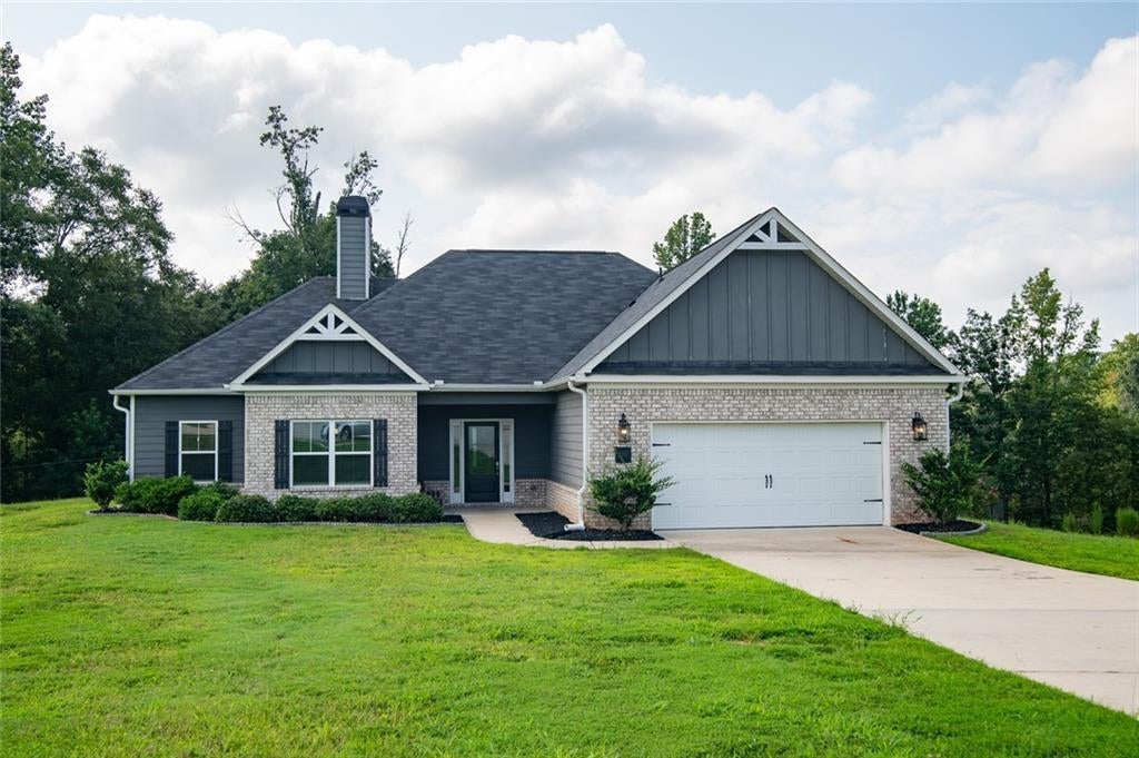 A stunning home on a spacious 3.43-acre cul-de-sac lot with no HOA!! This like-new property offers tons of amenities, including a split A/C unit in the garage, a bonus room/office or 4th bedroom. Soft-close cabinets and drawers with childproof systems, under-counter lighting, a walk-in pantry, plus all appliances, including the washer and dryer. A nest remote thermostat, TV mounts in the family room, primary suite, and back porch, Also, features a lawn irrigation system, hardy plank siding and brick exterior and a black chain-link fence in the backyard. The floor plan is perfect, with guest rooms on one side and the primary suite on the other. Primary suite boast a nice ensuite with tiled walk-in shower, double vanity and a nice walk-in closet!! Enjoy the private covered back porch with an extended deck area, perfect for entertaining. Conveniently located just minutes from Jackson Lake.