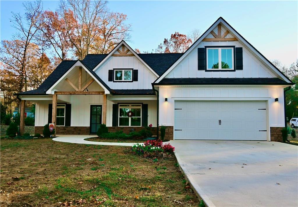Available Through Online Auction! Custom-built modern farm-house located in Tyrone, GA, just 20 minutes from Hartsfield-Jackson airport, built on a private one-acre lot with mature trees. ZERO percent down payment option available. Seller open to paying closing costs for mortgage interest rate buy-down. Low maintenance exterior with hardiplank siding/board and batten, cultured stone knee wall, and vinyl soffits/porch and patio ceilings. Custom iron front door, 100% LED owner-selected black light fixtures, and extra foundation, window, and door insulation, all contribute to very low monthly power bills, even in the warmest and coldest months. Luxury vinyl plank flooring in all rooms, white shaker kitchen/bath cabinets with grey quartz countertops, matching Kitchen Aid black stainless steel appliances, and custom black plumbing fixtures throughout. Expanded, covered back patio is perfect for entertaining with extra lighting, ceiling fan, fireplace, and views of nature and area wildlife. Upper level has an expansive suite/multi-purpose room with ensuite bath and unfinished attic has the height and square footage for potential living space/additional bedrooms. Priced below most recent appraisal value, structures have been or will be removed on adjoining lot for new farmhouse style construction, and $1M+ plus existing and upcoming home communities within 2 miles. Just a short drive to Town of Tyrone parks/shopping or a few miles to Peachtree City restaurants, etc. Sought-after Fayette County schools!