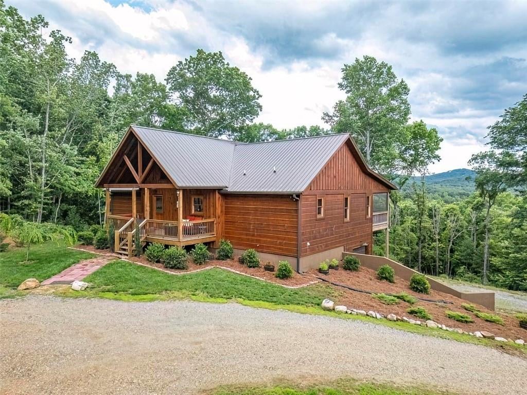 Escape to the tranquility and beauty of the North Georgia mountains in this stunning 2-bedroom, 2-bathroom home featuring a full basement with a garage that is stubbed, framed, and ready for additional living space and storage. Additional features include a dedicated pantry/laundry area with custom cabinets, a washer and dryer, and a laundry sink. Also, it includes a whole-house Generac generator and RV hookup equipped with electricity, water, and septic. The 3.11-acre property includes an additional lot, providing space for a detached garage or an extra home for investment or family expansion. Priced below the recent appraisal, this property is a must-see to appreciate all it has to offer. Experience spectacular sunset views in the North Georgia mountains—this home is waiting for you, as it is located on a quiet, wooded lot. This custom home is designed to capture breathtaking long-range and short-range mountain views year-round. It combines rustic charm with modern comfort, making it perfect for a full-time residence, vacation getaway, or investment rental. Enjoy high-speed internet access and easy proximity to hiking trails, wineries, and charming towns like Blue Ridge, Blairsville, Helen, Ellijay, and Murphy, NC. Step inside to an inviting open-concept living area with soaring cathedral ceilings and a cozy stacked stone fireplace. The well-appointed kitchen features granite countertops, custom cabinets, stainless steel appliances, and a breakfast bar that opens to the great room, perfect for entertaining or quiet nights. The spacious primary suite includes a private en-suite bath and direct access to one of the screened decks, where you can enjoy morning coffee or evening cocktails with panoramic mountain vistas as your backdrop. The second bedroom and full guest bath also provide ample space for family or guests, with direct access to their own private screened deck. Hit a HOME Run in the North Georgia Mountains!