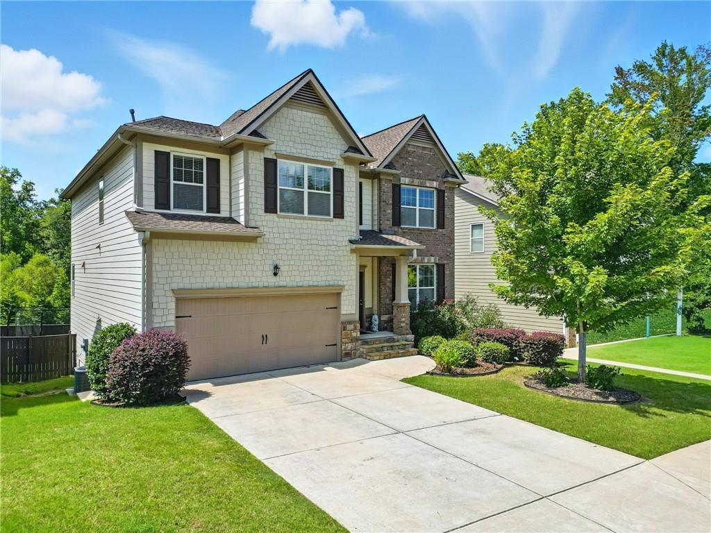 Situated on a spacious lot in the new section of the Centennial Lakes subdivision, this beautifully maintained 5-bedroom, 3.5-bath home in Acworth, GA, offers the perfect blend of style, space, and comfort. Bright and airy, the open-concept floor plan is ideal for everyday living and entertaining. The chef’s kitchen features granite countertops, stainless steel appliances, and an eat-in area for casual meals. A formal dining room provides an elegant space for family dinners or special occasions. Living areas flow seamlessly to an expansive deck and large concrete patio below, overlooking a fully fenced backyard—perfect for gatherings, play, and pets. Retreat to the luxurious master suite with coffered ceilings and a spa-like bath boasting a separate soaking tub, tiled shower, and double vanity. Four additional bedrooms offer plenty of space for family, guests, or a home office. A full basement adds flexibility for extra living or recreation, and thoughtful finishes throughout highlight the home’s quality and care. The home also features extremely high-end 50-year shingles, providing both durability and peace of mind. Every detail reflects meticulous maintenance, ensuring a move-in-ready experience. Located in the new section of Centennial Lakes, you’ll enjoy a peaceful neighborhood while staying close to shopping, dining, and top-rated schools. This home perfectly combines elegance, functionality, and convenience—ready to welcome its next lucky owners.