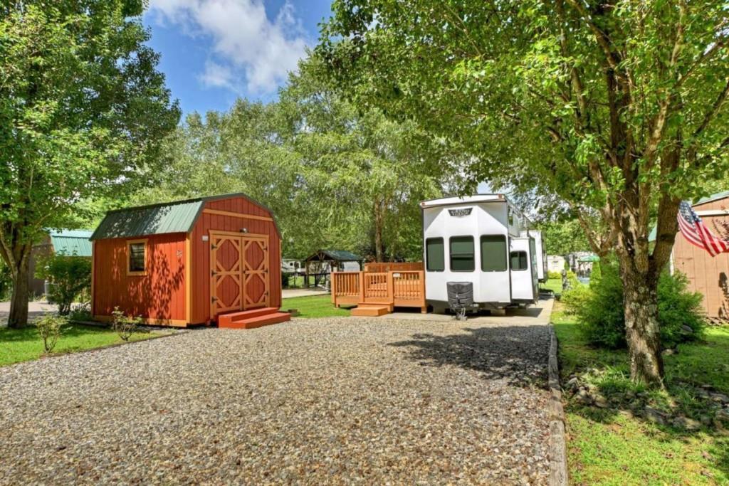 Turn-Key RV Retreat with Spacious Lot, Deck and Storage Shed. This Forest River Grand Lodge offers the perfect blend of comfort and functionality with two lofts for extra sleeping space, a private bedroom with washer/dryer, and a spacious open living area with fireplace and modern kitchen. Enjoy the outdoors on the custom deck or take advantage of the insulated storage workshop with power and A/C. Some of the exterior features include a spacious gravel parking pad, an expansive custom wood deck ideal for entertaining or soaking up the outdoors, insulated workshop/storage building with power, shelving, loft storage, and A/C unit - perfect for hobbies, tools, or extra gear, a fire pit and lush community green space just steps away. Some interior highlights include a bright open-concept living area with panoramic windows, modern finishes, and an electric fireplace, dual recliners, sofa, and entertainment center for cozy nights in, a fully equipped kitchen with center island, stainless steel fridge, oven, microwave, gas cooktop, and pantry, a dining nook with large windows and natural light, a private bedroom with queen bed, built-in storage, and a stacked washer/dryer, two lofts, each with space for sleeping or additional storage, ideal for guests or kids, a full residential-style bathroom with vanity, storage, and shower/tub combo. Move-in ready in a peaceful community, close to hiking, lakes, and downtown amenities!