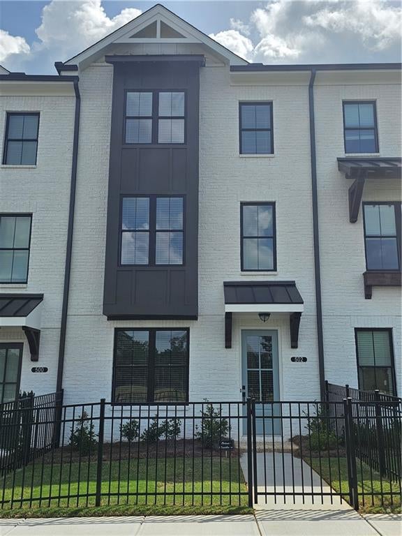 Enjoy living in this state of the art brand new just around 2000 sqft townhome (Glendale floorplan) built by Providence group which is located in Cumming’s newest master-planned community, Sawnee Village. This smart home features 3 generous size bedrooms, 3.5 tiled bathrooms, lots of windows to allow for ample natural light, beautiful mountain view from the front of home, a fenced in private front yard, rear entry 2 car garage, level 2 car driveway, lots of windows to allow for ample natural light, a sunroom, beautiful mountain view from the front of home, a fenced in private front yard, 2 car garage, a level 2 car driveway, tall windows and doors, crown moldings throughout, nice light fixtures, EV charging available in the garage, a tankless water heater, climate controlled attic and a large deck perfect for entertainment. First floor features a nice size bedroom with French doors and a private full bathroom with a bath tub and shower combo, perfect for guests or a home office or an in-law suite. The main level features 9' ceilings, oversized dual-pane windows, and a sunlit open-concept layout. The kitchen features a 9' quartz island, white linen 42" soft-close cabinetry, Xenon under-cabinet lighting, and a 4x12 subway tile backsplash, ENERGY STAR Certified GE stainless steel appliances, including a side-in gas range, microwave, vent hood vented to exterior, dishwasher, and a refrigerator. The main level features 9' ceilings, oversized dual-pane windows, and an open-concept layout with lots of natural light. The kitchen boasts a 9' quartz island, white linen 42" soft-close cabinetry, Xenon under-cabinet lighting, and a 4x12 subway tile backsplash. Enjoy ENERGY STAR Certified GE stainless steel appliances, including a side-in gas range, microwave, vent hood vented to exterior, dishwasher, washer dryer and a refrigerator. The oversized private rear deck is equipped with GFCI outlets, perfect for grilling or lounging. The level also includes elegant 5” crown and base molding throughout. The top level features a spacious owner’s suite featuring a walk-in closet, soaking bath tub, separate walk-in shower, and dual quartz vanity with linen cabinetry. The top level has a laundry room with a washer & dryer, linen closet and two spacious bedrooms including master and very nicely finished bathrooms. A secondary guest bedroom with its own private bath is located at the front of the home. Laundry is conveniently positioned just outside the owner’s suite. Additional smart features include a Nest Video Doorbell, Nest Hub 7" Display, and WiFi Mesh Point. Sawnee Village offers exceptional access to GA-400, top Forsyth County schools, and future on-site retail/dining. The neighborhood also features a lot of guests parking spots and is located mins from to GA-400, top Forsyth County schools, and future on-site retail/dining. This is the only new townhome community walkable to retail, dining, and entertainment and shopping coming soon to Market Square within the complex. Please go to Providence group builder website to see a video tour of this beautiful and decorated model to visualize the home in decorated state.