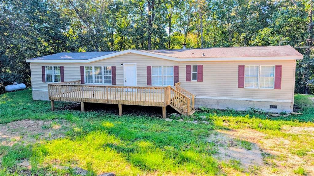 Four bedroom ranch on over one acre in Dahlonega! Spacious floor plan with split bedroom layout. Additional den with pretty black painted stone wood burning fireplace. Laminate flooring throughout. Master bath has a soaking tub and walk in closet. Laundry closet / mudroom conveniently off the kitchen. House is on a permanent foundation and is being sold as is. Minutes from downtown Dahlonega, shops, restaurants and UNG. Property has been a long time rental. Rent rolls available on request. LISTING PRICE BELOW APPRAISED VALUE.