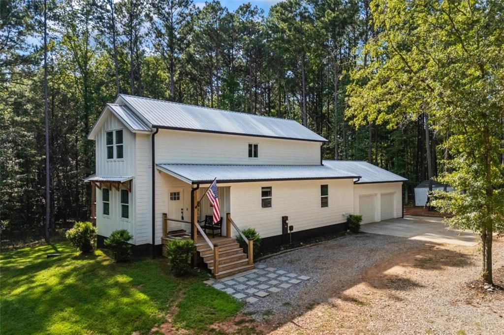Tucked away on 2.7 wooded acres yet just minutes from Highway 78, this charming home offers easy access to Monroe, Athens, and Bethlehem while providing the seclusion and space you've been looking for. Downtown Monroe is less than 3 miles away and features locally owned shops, seasonal festivals, outdoor concerts, and excellent dining. A welcoming front porch with a stained wood ceiling opens into a light-filled floor plan with stunning white oak floors throughout the main level. The living room flows seamlessly into the dining area and kitchen, designed for both everyday living and entertaining. The kitchen serves as the heart of the home with quartz countertops, custom cabinetry, floating shelves, stainless steel appliances, and a large island. Also on the main level are a half bath and a spacious mudroom/laundry room with built-in cabinetry and access to the oversized two-car garage. The owner's suite is complete with a walk-in closet with built-ins and an en-suite bath featuring double vanities and a tiled shower. Upstairs, you'll find a generous loft area or flex space, along with two oversized bedrooms, each with its own private bathroom with tiled floors and tiled tub/shower combo. The full finished basement expands the home with a kitchenette, a large living/flex area with a generous sized storage closet, a bedroom, and a full bath with a tiled shower. Step outside and enjoy the peace and privacy of your wooded surroundings from the covered deck or extended patio. With its thoughtful design, high-end finishes, and an unbeatable location close to shopping, dining, and entertainment, this home offers the best of both worlds, peaceful living with quick access to everything.