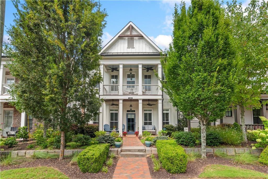 This is the ultimate downtown living opportunity you’ve been waiting for! You’ll fall in love with this exquisite and spacious home loaded with over $100K of special features and upgrades, all designed to enhance your everyday life. The most charming double porches welcome you. Upon entering this stunning home, you’ll appreciate the upgraded rich wide-planked LVP flooring and the soaring 10 foot ceilings throughout the main floor. The two spaces located at the front of the home are perfect for elegant dinners and cozy fireside evenings. The study also does double duty with its specially designed built-in cabinet that serves as a tucked away desk/office. Also, the gracious dining room seats at least eight guests with easy access to a built-in butler’s pantry/bar that’s ready for service. The back half of the main floor offers a casual, open space for relaxed living and entertaining. Enjoy a beautiful, well-equipped kitchen with KitchenAid and GE Profile appliances including a double oven. There’s a perfect sunny breakfast area, just the place for enjoying morning coffee – all open to a very spacious and stylish great room, boasting a modern stone fireplace, flanked by stained floating shelving. This main floor is conveniently located steps from the 2-car garage, making unloading groceries a breeze. Complimenting this amazing space you’ll note other custom upgrades like a designer ceiling fan, island pendants, gold-tones hardware, upgraded sink faucet and other lovely light fixtures. And, don’t miss the smartly designed custom pantry and closet. The second floor does not disappoint with four spacious bedrooms, including a sumptuous primary suite complete with a fabulous sitting area and private screened porch. The primary suite features a stunning spa-like bath with simply the best amenities: oversized walk-in shower, dual granite topped vanities, free-standing slipper tub ready to spoil you, and two enormous fully custom designed closets that will simply wow you. There’s no home in this price point that offers a primary suite like this! The lovely secondary bedrooms have access to well-appointed baths, more custom closets and the second story porch with a view of downtown Alpharetta. One more (a third) floor awaits currently used as an inviting den with a full bath that is perfect for movie nights or game day. Another unique feature of this home is the two walk-in storage spaces located on the third level…there’s definitely no lack of storage here! The garage provides even more storage with its motorized lifts plus there’s a epoxy finished floor and wiring for an EV charger. The cu degras is the most enchanting porch and side patio with its lush professional landscaping, fun party lights strung all around, stepping stones and planters brimming with greenery. It’s one heavenly escape from the everyday hustle and bustle. This home offers the ultimate location, just a few minutes’ walk to all of the fun, action and excitement of downtown Alpharetta’s shopping, dining, and popular events like the Brew Moon Festival, Taste of Alpharetta and the Songwriter’s Festival…and so much more! And, the amazing Avalon is within walking distance too. If you’re looking for a home that is located in the middle of it all without compromising comfort and space, you’ve found your new home!