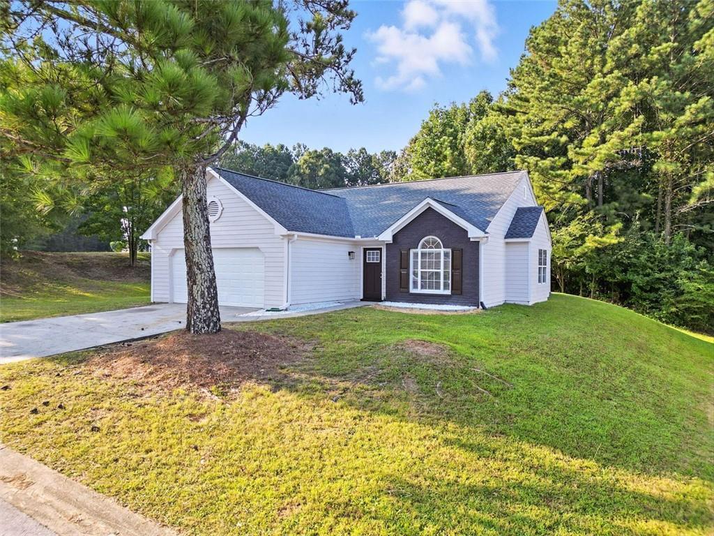 Welcome home to this adorable 3 bed 2 bath ranch. When you walk into the foyer, you are greeted with the laundry room and access to the two cars garage on your left and the formal dining on your right. The open concept kitchen boasts white cabinets and granite counter tops with a breakfast bar that leads into the fireside family room. Primary bedroom and ensuite features a vaulted ceiling and spacious bath. Sit and enjoy your morning or evening beverage on your patio overlooking your backyard. New Roof and new furnace! Home provides easy access to I20, Six Flags, shopping, restaurants, and schools. Come check out this home today!
