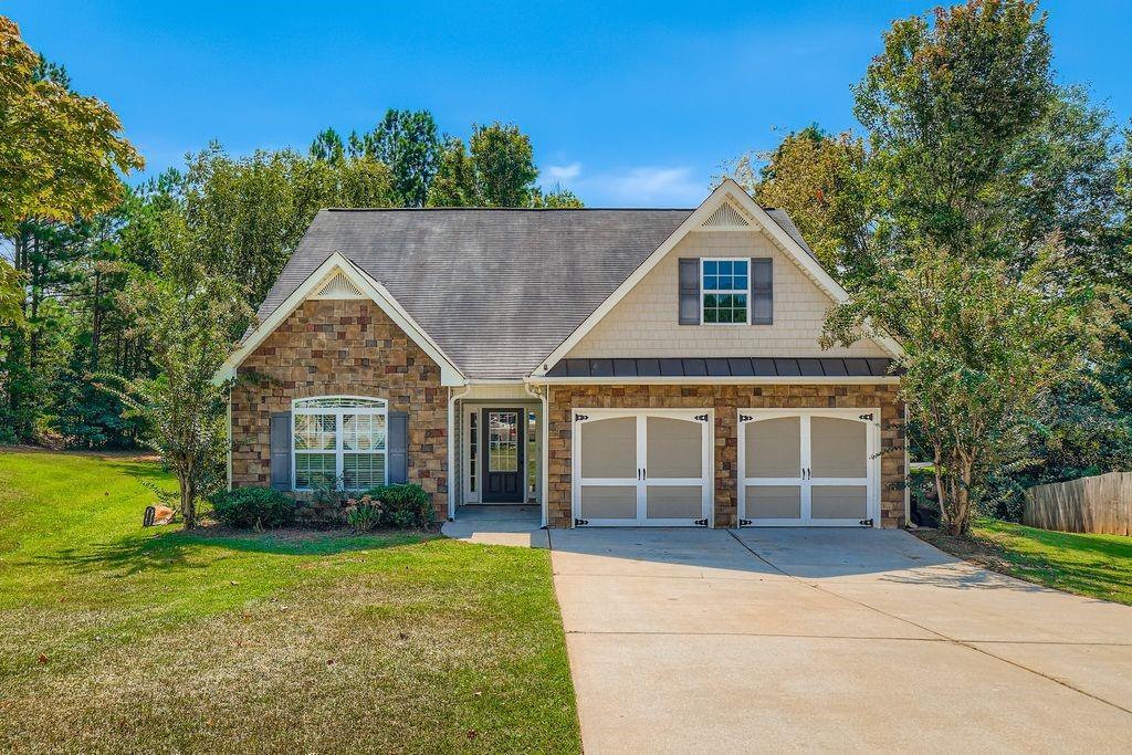 Ideally located just minutes from I-20 and Carrollton Villa Rica Highway, this beautifully maintained 3-bedroom, 2-bathroom home combines style, comfort, and convenience—with no HOA restrictions. The spacious living room features soaring vaulted ceilings and a stone-faced fireplace, creating a cozy and welcoming atmosphere. A formal dining room with elegant double tray ceilings adds a refined space for entertaining, while the kitchen offers a charming breakfast nook, Grand Pearl countertops, and a dishwasher, perfect for everyday living. The primary suite serves as a peaceful retreat, complete with double tray ceilings, a walk-in closet, dual vanities, a soaking tub, and a separate glass-enclosed shower. Outdoor living is easy with a rear patio and fenced backyard, offering privacy and space for pets, play, or relaxation. Additional features include a 1.5-year-old HVAC system—providing comfort and peace of mind. This home blends thoughtful design with a prime location close to shopping, dining, schools, and commuter routes—making it a standout in the Villa Rica area. Discounted rate options and no lender fee future refinancing may be available for qualified buyers of this home. Priced to sell and move-in ready.