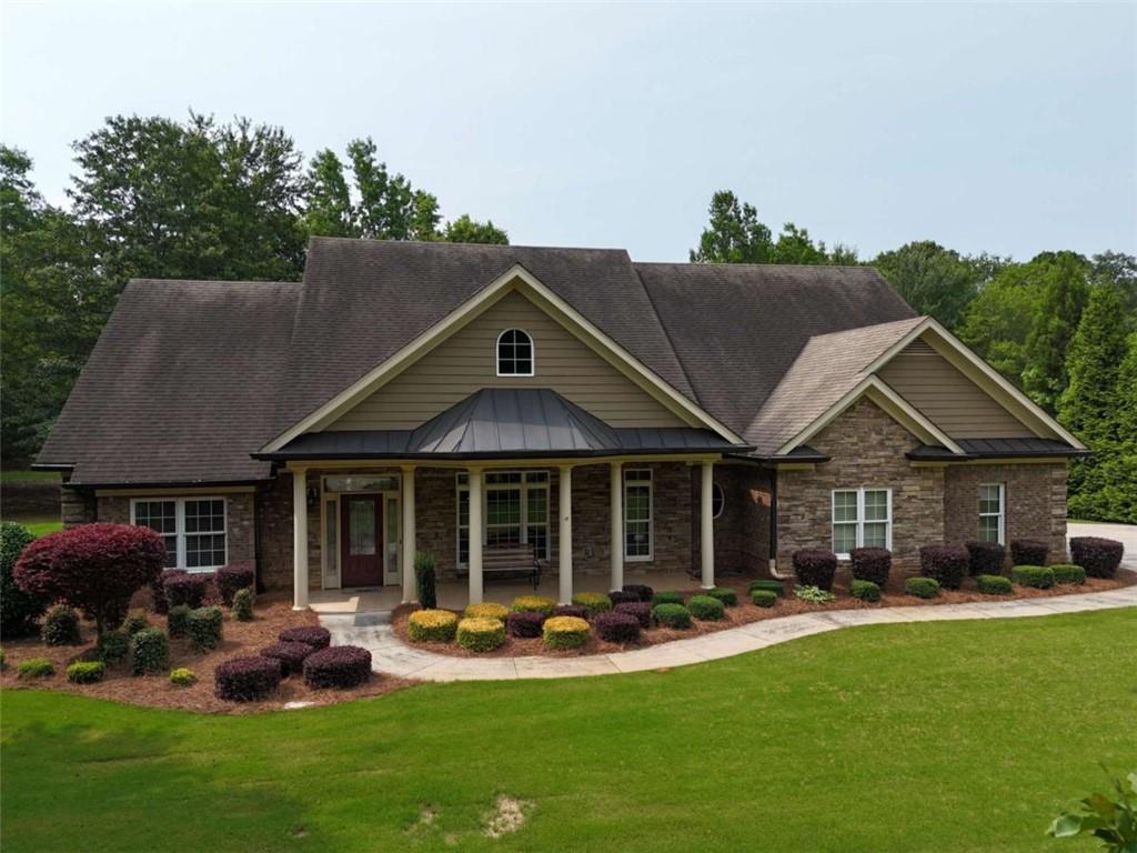 Craftsman style home located on a level 1.57-acre lot offering exceptional privacy while still being convenient to surrounding restaurants and shopping. This well-kept home features three bedrooms plus two and a half baths. Upstairs an additional bonus area is a blank canvas to expand your living space. This home features a spacious primary suite and two secondary bedrooms on the main level. The owner's suite offers an oversized closet and a large walk-in shower with separate tub. Its main living area has a separate dining room and living room that share a double-sided fireplace with an office/flex space all while providing plenty of outdoor light, bringing indoor and outdoor living together. The kitchen is perfect for entertaining with a large island, bar seating, gas cooktop, built in oven with solid surface countertops and walk in pantry. The covered back porch allows for ultimate views and relaxation. An additional detached garage is perfect for any projects or additional storage.