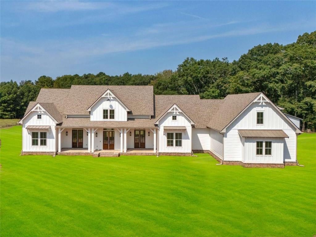 Welcome to your dream home, a perfect blend of luxury, space, and serenity. Nestled on 12 private acres, this brand-new 2025 construction offers peaceful country living while keeping you close to all the conveniences you need! Inside, soaring 10-foot ceilings run throughout, with a breathtaking 26-foot ceiling in the living room that sets the stage for open, airy living. The main floor features 4 spacious bedrooms. The master suite is a true retreat, complete with private walk-through access to the back patio, a spa-like en suite bath with double vanities, a walk-in shower, and a soaking tub. The master closet even connects directly to the laundry room for unmatched convenience. Two additional bedrooms share a stylish Jack-and-Jill bathroom, while a guest suite includes its own private bath. You'll also find a dedicated office space and a convenient powder room for guests on the main level. The heart of the home is the chef's kitchen, boasting a show-stopping island, farmhouse sink, brand-new appliances, and ample storage. The kitchen flows seamlessly into the spacious living room where a floor to ceiling brick fireplace creates the perfect gathering spot. Upstairs, a 900 sq. ft. bonus room with walk-in attic access provides endless possibilities such as a media room, playroom, or fitness space. Step outside to a back patio designed for entertaining with plenty of room for everyone and its own fireplace that's just waiting for you to hang your flat-screen TV. Perfect for football weekends, family cookouts, or cozy nights by the fire. Car lovers and hobbyists will appreciate the three-car garage plus a detached 1,000+ sq. ft. shop, offering room for all your projects and storage needs.With modern comforts, soaring ceilings, and acreage to call your own, this property is more than a home, it's a lifestyle waiting on you! ** PLEASE DO NOT GO TO PROPERTY WITHOUT APPOINTMENT**