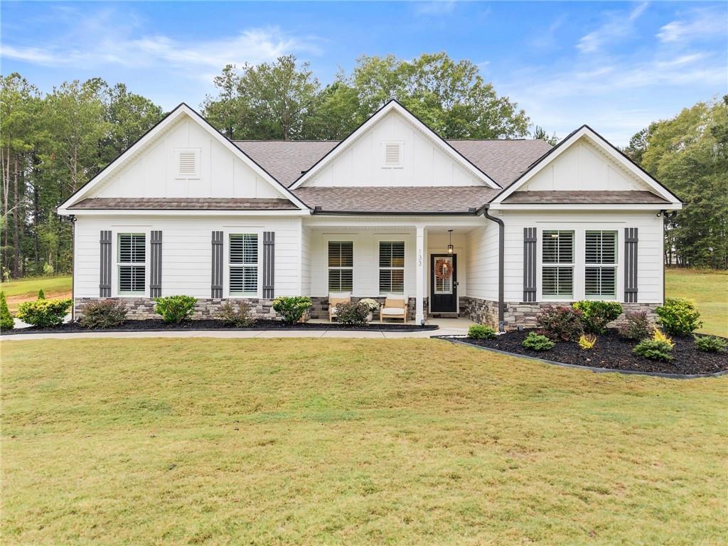 NO HOA in the Heart of Statham! This Stunning 4-Bedroom, 3-Bath Side-Entry Ranch is set on 1.20 Acres and is Ready for its New Owners! From the Wood-Beamed Ceiling to the Custom Picture-Frame Molding, Designer Sconces, and NEW RevWood Flooring throughout, this Home impresses at every turn. The Open-Concept Kitchen showcases Elegant Granite Countertops, White Cabinetry with Black Hardware, an Antique Bronze Faucet, Large Island, and Spacious Pantry, overlooking the Dining Area and Living Room with an Electric Stacked-Stone Fireplace and Accent Wall that set the stage for cozy gatherings. The Owner's Suite on the Main features a Double-Trey Ceiling, Dual Vanity, Oversized Tiled Shower, Linen Closet, and Expansive Owners Closet, while Three Additional Bedrooms and Two Full Baths with Granite Countertops provide versatile space for Guests or a Home Office. Additional Upgrades include Custom Plantation Shutters, Detailed Board and Batten Trim Work, Black Light Fixtures, and a Mud Bench off the Garage! Outside, Bronze Gutters with Leaf Guards add curb appeal and low-maintenance upkeep. Outdoor Living is complete with a Covered Rear Porch perfect for Year-Round Enjoyment ready for Game Days, Gatherings, and Entertaining! All of this conveniently Located to US-29, SR-211, Downtown Statham, Athens, Winder, Monroe, Braselton, and More! Inquire About Up to 1% Of Loan Amount Contribution OR Starting Rate of 5.25% with Lender Paid Buydown by Utilizing Joel Van Asch (770) 634-9079 with Presidential Bank Mortgage.