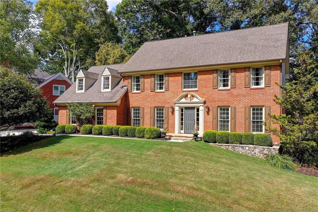 This beautifully transformed home is waiting for you – lovingly updated with soft neutral paint colors, elegant finishes, and thoughtful lighting in every room. This home feels warm and inviting from the moment you walk in. One of the most impressive features is the outdoor space, where a spacious covered porch overlooks a backyard with extensive stonework, a winding stone pathway, and a cozy firepit perfect for gathering. Other recent upgrades include a new driveway with brick inlay and Jeldwen windows throughout. Inside, hardwood floors lead from the foyer to a dining room and a den, both with elegant molding. The den features French doors and can also work as an office. Beyond the foyer you will find an eat-in kitchen with fantastic views of the backyard. This Chef’s kitchen has hardwood flooring, beautiful stone countertops, pantry closet, center island, double self-cleaning convection ovens, and a built-in desk. The kitchen flows into a vaulted Great Room with a floor-to-ceiling brick fireplace and direct access to the covered porch and backyard. The spacious main floor laundry room features travertine flooring, a linen closet, and a sink. The updated powder room has upgraded tile flooring and a vanity with a granite countertop and vessel sink. Upstairs you will find hardwood flooring throughout the hallway plus a separate linen closet. The Primary bedroom features a tray ceiling and dual custom closets. The remodeled Primary bath has porcelain tile flooring, a beautiful soaking tub, a separate shower, separate vanities with granite countertops, and a linen closet. Three secondary bedrooms all have walk-in closets, one with a custom closet. The shared hall bathroom has a granite countertop. A back staircase adds extra convenience. The unfinished terrace level is ready for your vision. The owners created custom design plans for a future remodel and are happy to share them. River Station is an active swim/tennis community located along the Chattahoochee River with 4 lighted tennis courts, 3 pickleball courts, a pool, a playground, and year-round community events. Top rated schools include Simpson Elementary and Paul Duke STEM High and this home is convenient to a number of private schools including Wesleyan, Greater Atlanta Christian, Cornerstone Christian, Providence, and Davis Academy. Peachtree Corners has it all with fantastic shopping and dining, parks along the Chattahoochee River, and concerts and community events throughout the year. Come see all this home has to offer.