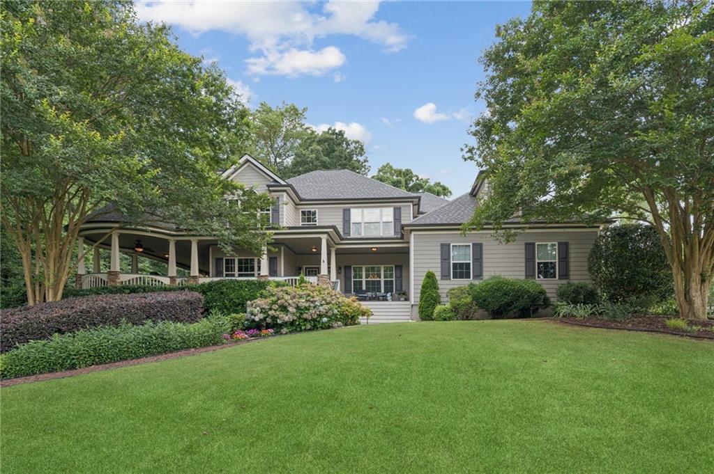 CURB APPEAL IS JUST THE BEGINNING OF THIS STUNNING 5 bedroom/4.5 bath home with expansive outdoor living spaces that will make you never want to leave! Inviting front porch welcomes you into spacious entry foyer leading to 2-story great room with stone fireplace with gas starter. Eat-in kitchen features ample cabinets, granite, recessed lighting, breakfast bar with pendant lighting, pantry, stainless appliances including gas cooktop and built-in oven and microwave. Separate dining room with generous built-in bench with storage underneath. Master suite on main level is a private retreat with vaulted ceiling, gorgeous palladium window, French doors leading to wrap-around porch, walk-in closet and fully-tiled bath with oversized shower, jetted tub and linen closet. Main level also features office/flex room, large bedroom with private bath that is currently being used as a den, powder room and spacious laundry room with plenty of storage. Wrought-iron staircase leads to second level with lovely loft/sitting area that overlooks the great room, three large bedrooms including one with its own private bath and an additional hall bath. Full basement includes a huge finished room and boat door. Outside you will fall in love with the fabulous wrap-around porch with plenty of space for outdoor dining, separate screened porch and deck off kitchen. The professionally landscaped and perfectly manicured 1.16 acre park-like yard that features pergola. fenced back and creek is the icing on the cake to this gorgeous estate. Located on a small cul-de-sac in the highly-desired swim/tennis community of Clover Mill Farms near plenty of shopping, restaurants, great schools and more, this home is everything you've dreamed of!