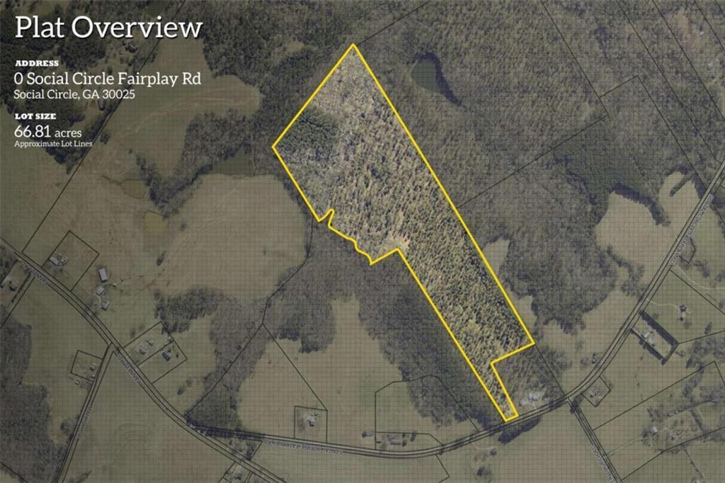Approximately 66 acres for sale in Social Circle surrounded by other large tracts of land. Property is partially wooded (Hardwoods & Pines), level to gently rolling topography with a stream along the back. Private location with an abundance of wildlife. Centrally located, only 15 minutes to downtown Monroe, 15 minutes to downtown Madison, and 15 minutes to I-20.