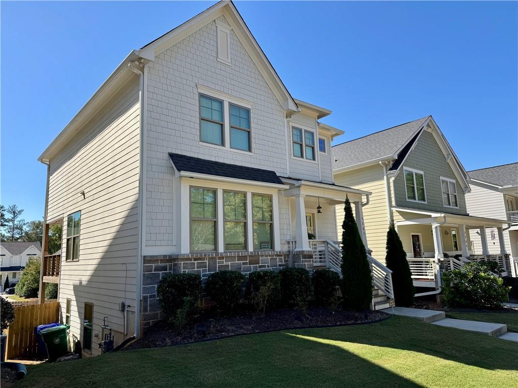 Luxurious Living in Stone Mountain Village! Experience modern comfort in this gorgeous newer construction home featuring a desirable open-concept floor plan. The spacious living area flows seamlessly into a chef’s dream kitchen—complete with a gas range, large island with breakfast bar, and plenty of counter space for entertaining or everyday living. Step outside onto your private deck, perfect for morning coffee or unwinding at the end of the day. The large primary suite offers a relaxing retreat with a double vanity, separate shower, and soaking tub. On the lower level, a generous bedroom adjacent to the garage includes its own full bath—ideal for guests, a home office, or studio space. Located just ¼ mile from Stone Mountain Park, where hiking, kayaking, and outdoor fun await, and only two blocks from Stone Mountain Village’s charming restaurants, coffee shops, and boutiques. Enjoy a vibrant community full of festivals, concerts, and small-town charm—all just minutes from the city.